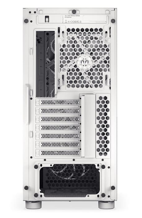 La Arx 500 White ARGB destaca por su acabado blanco uniforme, con un tono cuidadosamente ajustado para mantener una apariencia impecable incluso tras años de uso. Su estructura está pensada para equipos ATX, microATX y Mini-ITX, ofreciendo un espacio interior generoso pese a su formato compacto.