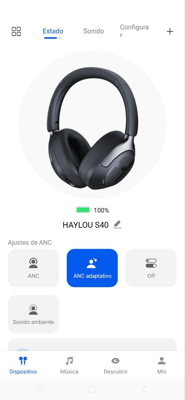 La app Haylou Sound permite personalizar el ecualizador, activar LDAC, cambiar modos de ANC y actualizar el firmware. La interfaz es sencilla, aunque algunas funciones requieren reiniciar los auriculares tras su activación, como el modo LDAC.