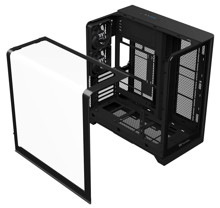 El fabricante ha presentado el nuevo Thermaltake View 390 TG, una torre ATX centrada en mostrar el hardware mediante un diseño panorámico. El chasis incorpora un panel lateral de vidrio templado curvado y un frontal también en vidrio, creando una vista continua del interior. Está disponible en acabado Black y Snow, con un claro enfoque en estética y visibilidad del sistema.