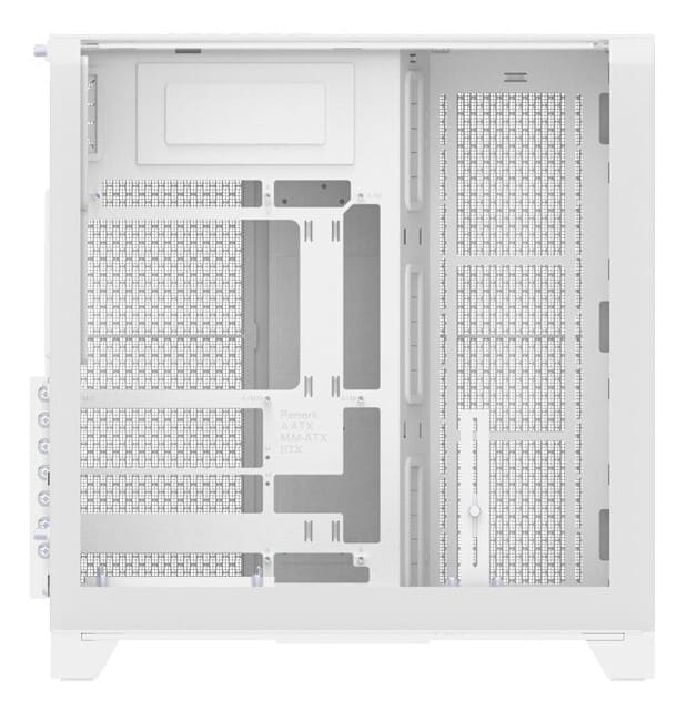 El modelo está preparado para las placas base con conectores invertidos, gracias a su compatibilidad con ASUS BTF, MSI Project Zero y Gigabyte Project Stealth. El interior incluye pasacables optimizados y una bandeja trasera con rutas específicas que facilitan un montaje limpio incluso con hardware de gran formato, una prioridad en sistemas de exhibición.