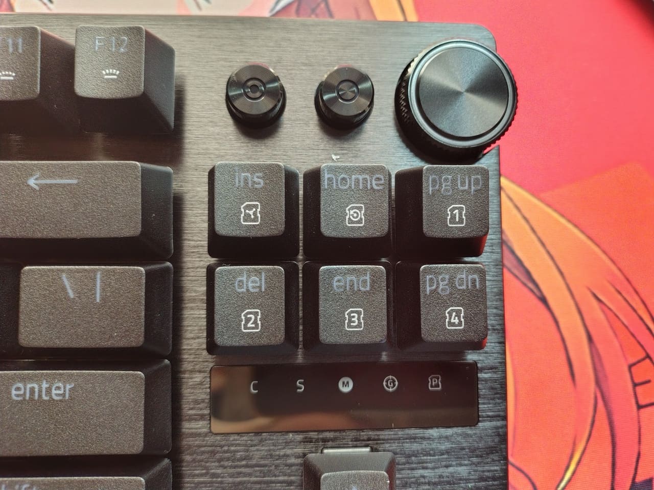 La rueda multifunción cuenta con tres botones dedicados permite controlar volumen y multimedia. El dial tiene un clic agrtadable y la el LED muestra visualmente el ajuste. Para poder personalizarlo al completo tenemos Razer Synapse 4. Este permite ajustar cada tecla, crear macros, asignar funciones, ajustar la iluminación RGB y vincular perfiles a juegos específicos. Puedes guardar hasta 6 perfiles en la memoria integrada del teclado.