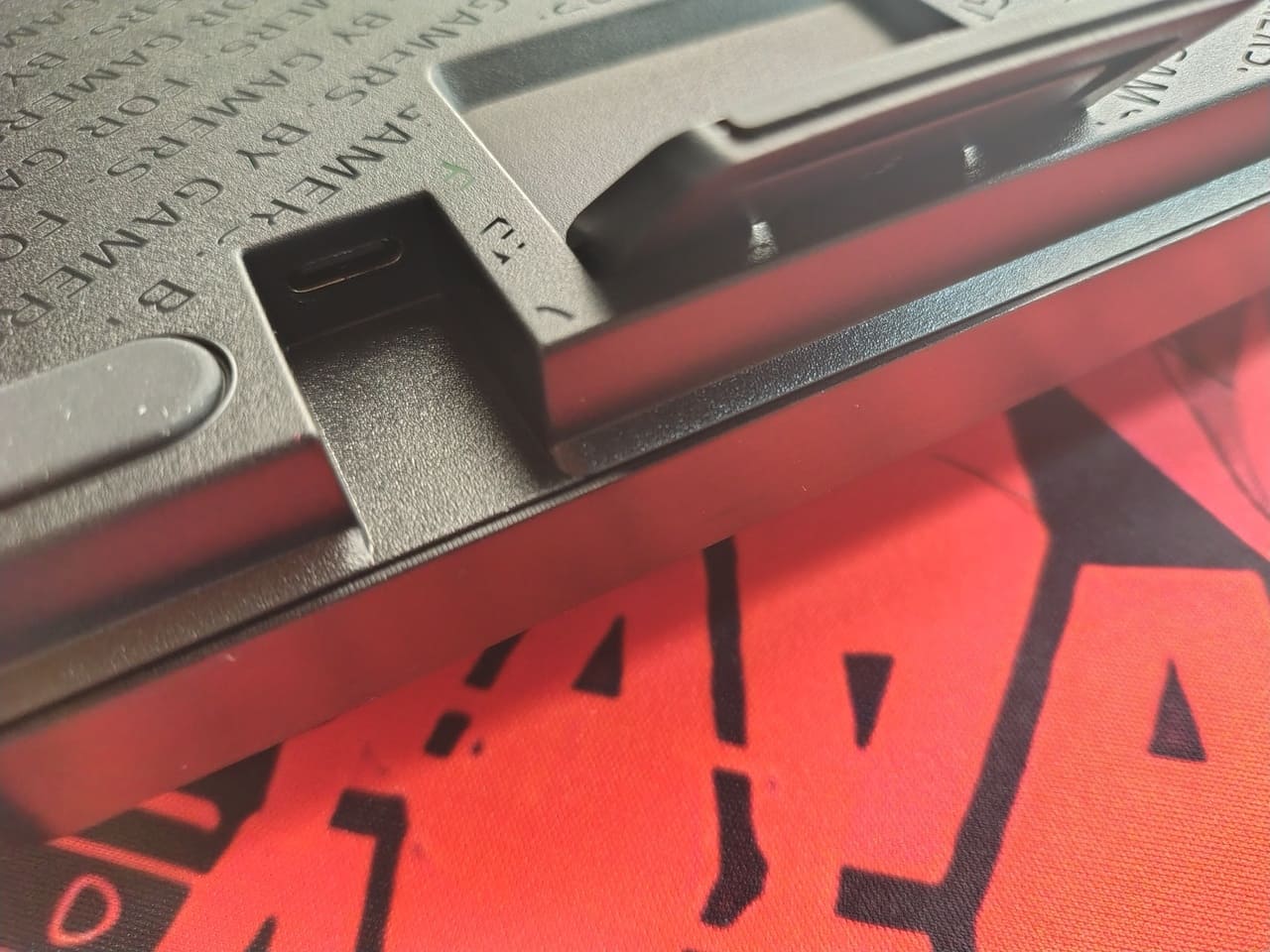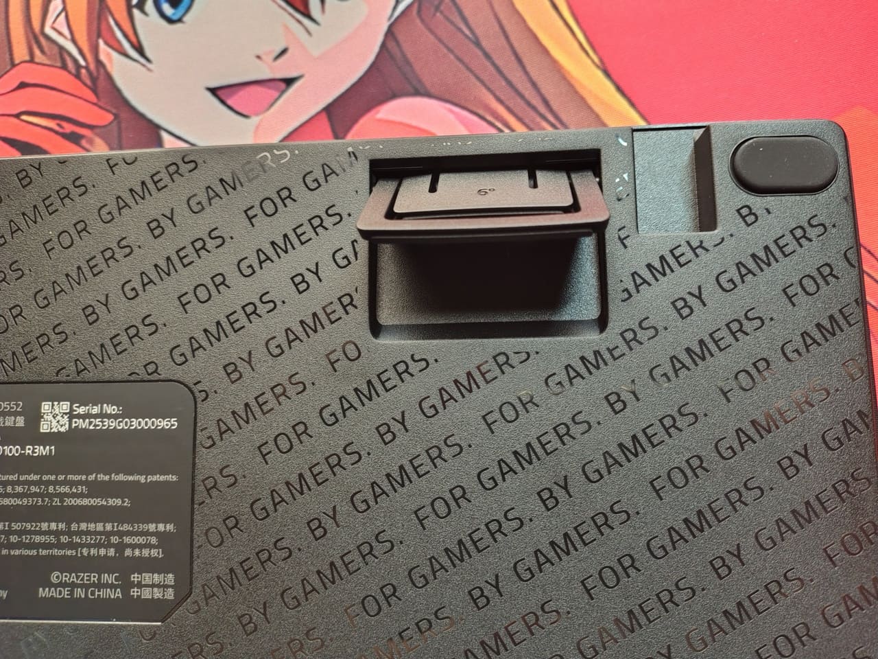 En cuanto a la distribución, contamos con 84 teclas en formato US. La versión que he probado tiene distribución americana, algo a tener en cuenta si estás acostumbrado al layout español, aunque conociendo a la marca incorporará versión en español y nos manda esta a los medios especializados para poder cubrirla. Las teclas están fabricadas en PBT de doble inyección con superficie texturizada, un material mucho más resistente que el ABS tradicional y que no se desgasta tan fácilmente. La inclinación del teclado viene con patas ajustable, por lo que podemos ajustarlo a la altura que deseemos. El perfil de las teclas es ligeramente cóncavo, Esto es especialmente útil en juegos donde apenas miras el teclado. Las inscripciones son grandes y permiten que la iluminación RGB se refleje perfectamente.