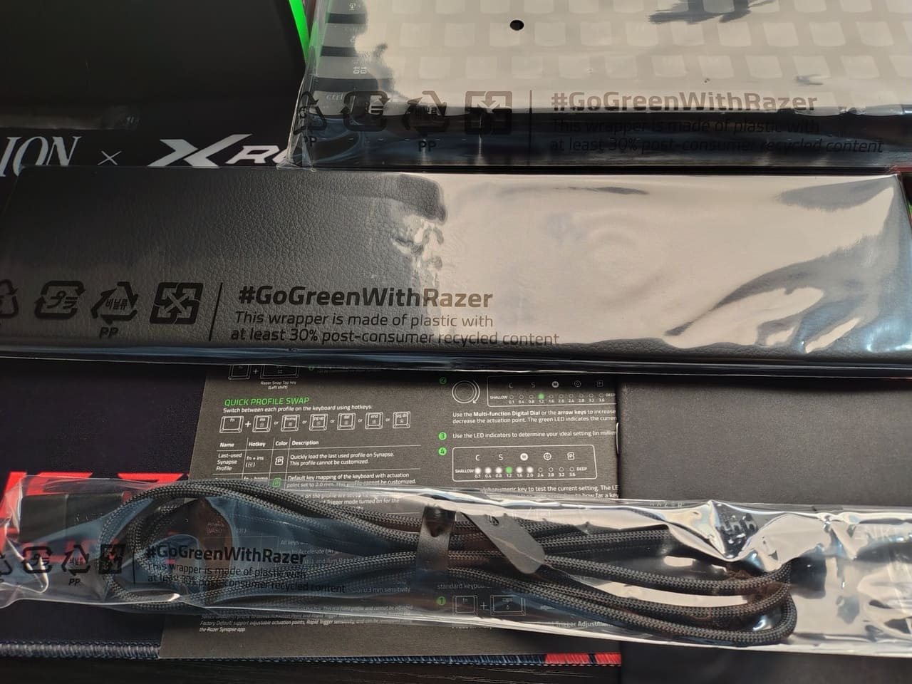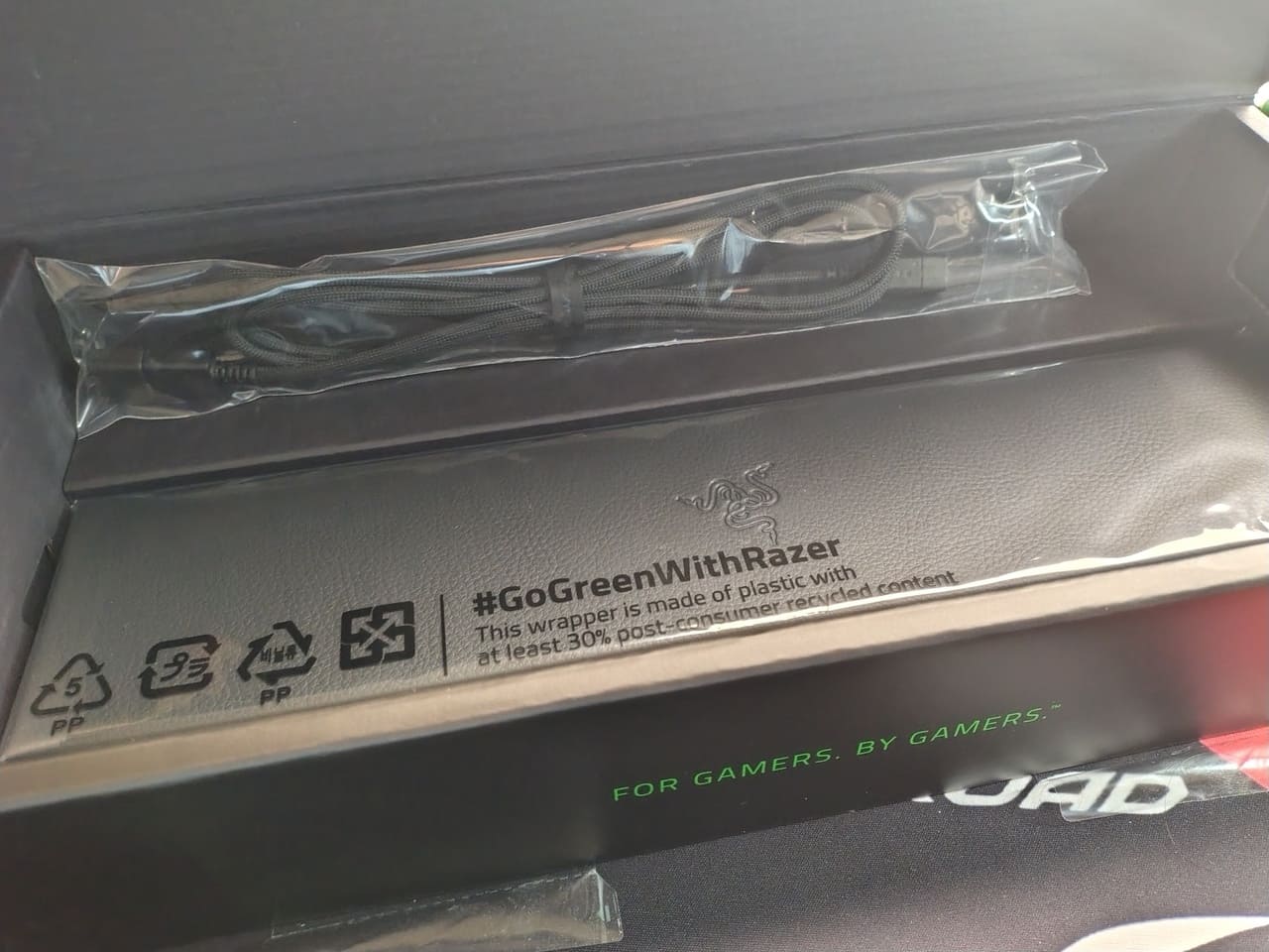 Como siempre me gusta empezar hablando del empaquetado. La caja del Huntsman V3 Pro TKL mantiene el diseño característico de Razer. Todo viene muy bien protegido con un marco de cartón que abraza el teclado. Dentro encontramos el propio teclado, el cable USB-C mallado , el reposamuñecas magnético, y una tarjeta de configuración rápida justo a instrucciones.