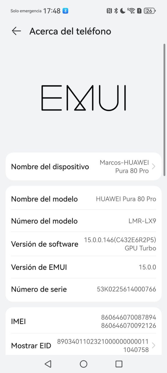 El Huawei Pura 80 Pro funciona con EMUI 15, basado en Android, pero sin acceso nativo a los servicios de Google. En su lugar, Huawei ofrece AppGallery y Petal Search como alternativas.