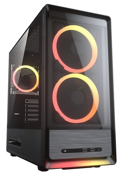 El CFV235-G representa una de las interpretaciones más radicales del enfoque térmico de COUGAR. Este chasis introduce la estructura Central Floating Ventilation (CFV), una partición suspendida entre la fuente y la cámara principal que convierte el espacio vacío en un canal activo de ventilación. El resultado es una ampliación real de las rutas de entrada de aire, con un diseño panorámico dominado por cristal y una estética marcada, pensada tanto para exhibición como para sistemas de alto rendimiento. Esta versión concreta se muestra como exclusiva de CES para Estados Unidos.