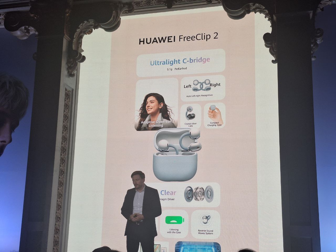 Huawei abrió la sesión recordando el recorrido de la primera generación, que superó los tres millones de unidades vendidas. Según la compañía, el objetivo de los FreeClip 2 es reforzar ese posicionamiento con un producto más ligero, más estable y con mejoras tangibles en calidad de sonido y llamadas, dos aspectos clave para un dispositivo que no sella el canal auditivo.