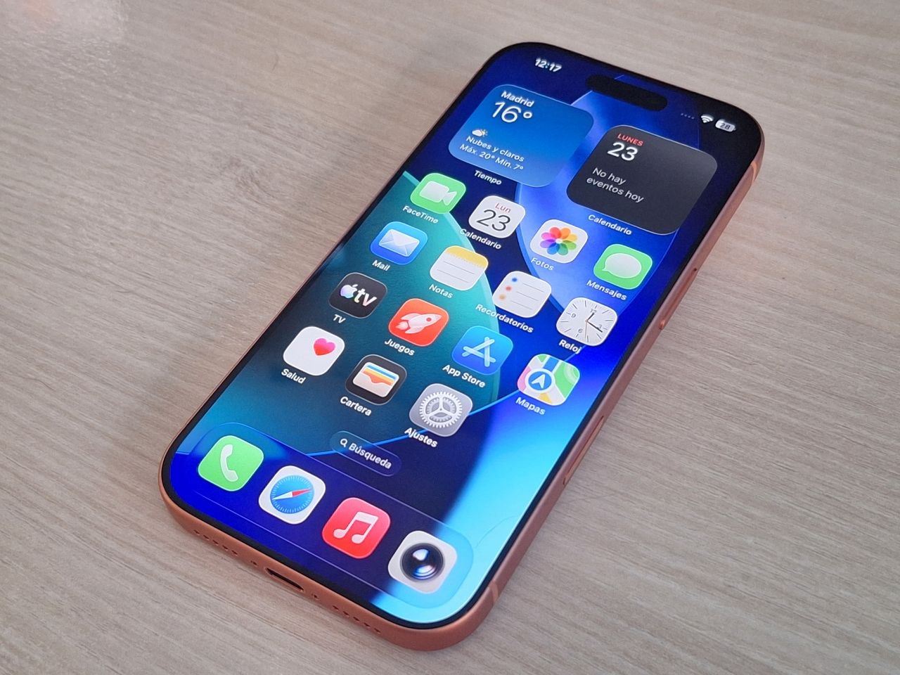 El frontal y la trasera están protegidos por Ceramic Shield 2, una evolución del material de protección que Apple introdujo hace varias generaciones. La sensación en mano es sólida, con un peso de 204 gramos que lo sitúa en la media de los smartphones de gama alta actuales.