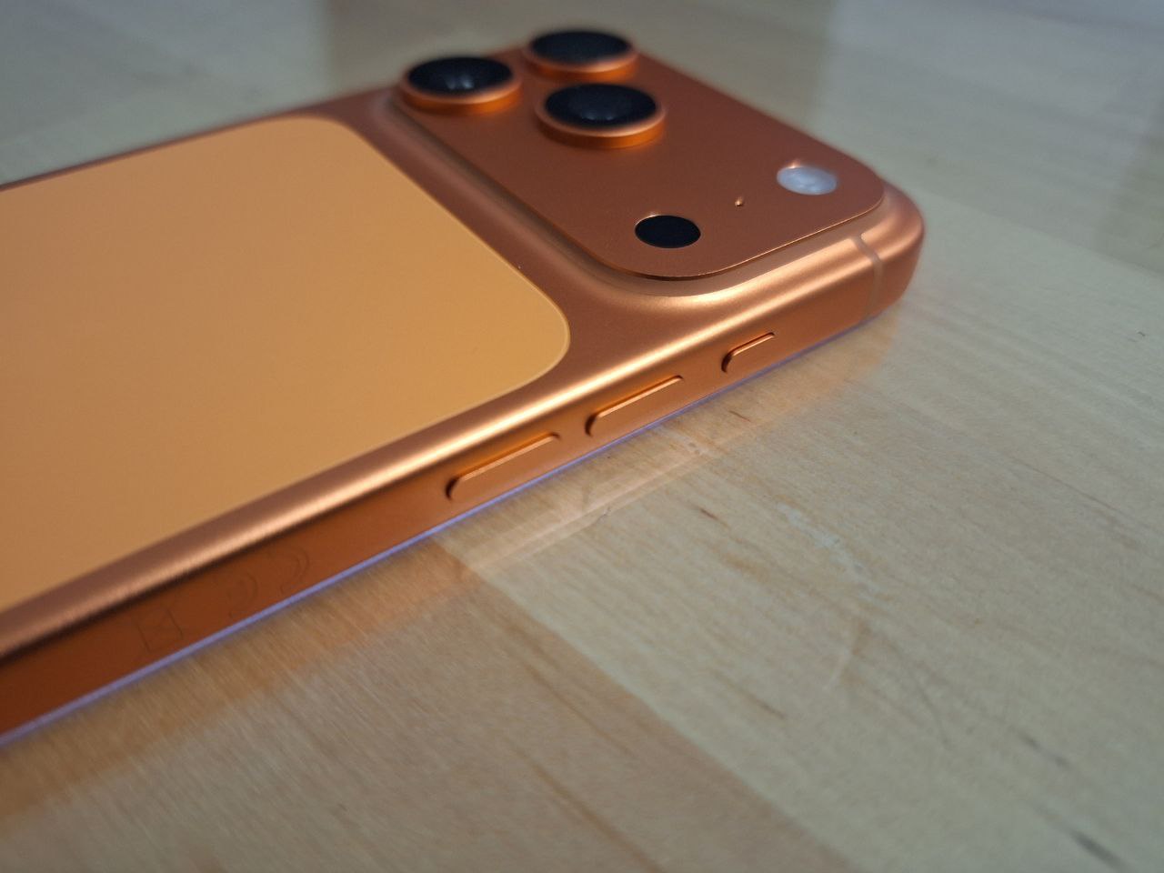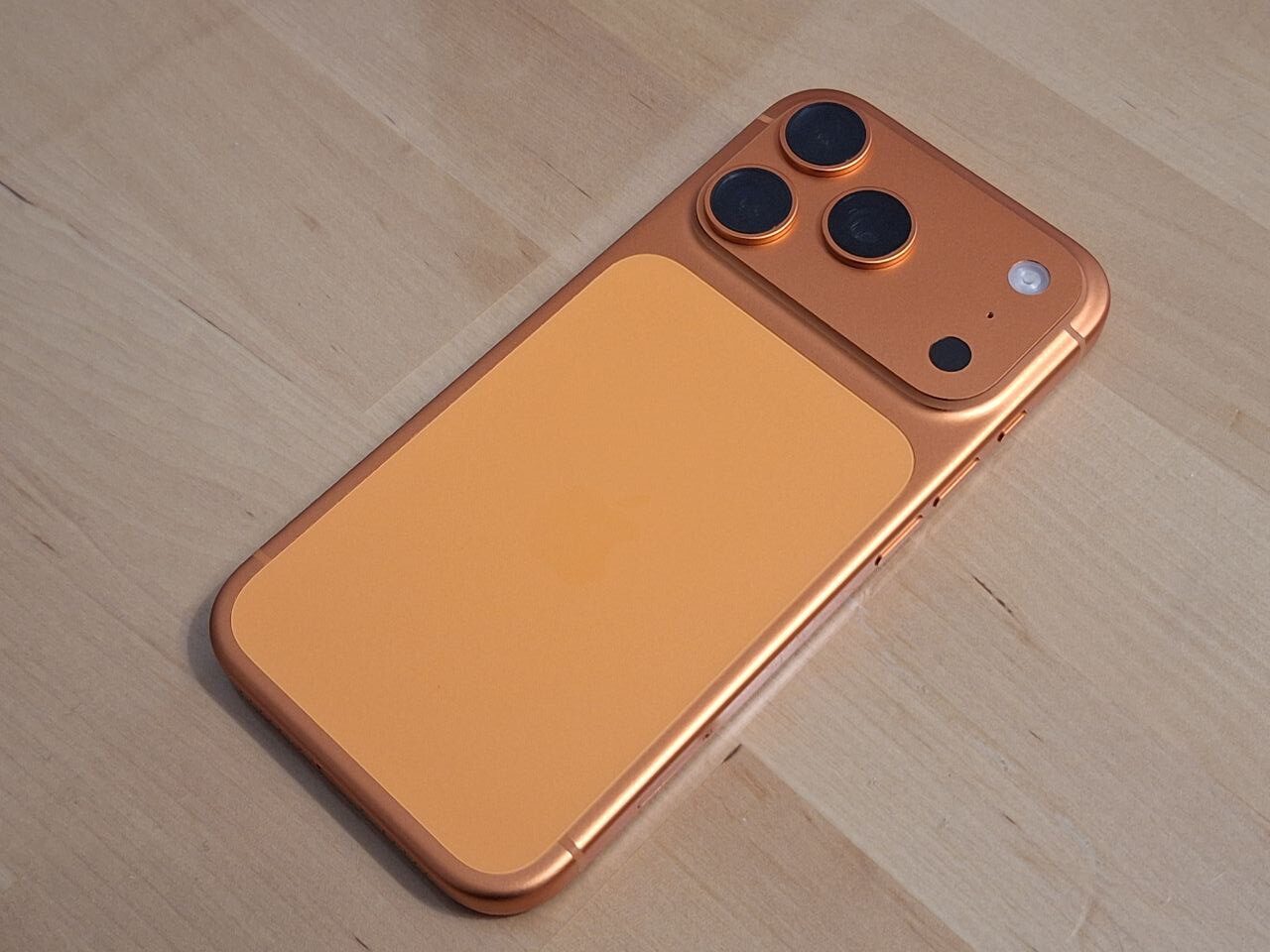 Apple ha apostado por un nuevo diseño unibody de aluminio, una decisión que marca un cambio respecto a generaciones anteriores. Este enfoque no solo aporta una estética más limpia, sino que también mejora la rigidez estructural del dispositivo. El iPhone 17 Pro está disponible en plata, naranja cósmico y azul oscuro.