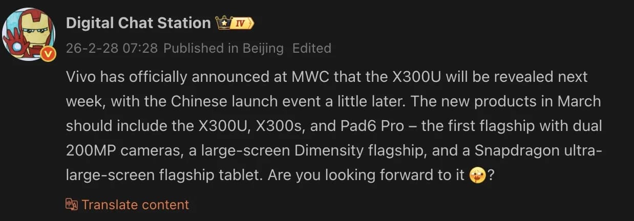 En una publicación adicional en Weibo, el filtrador indicó que la tablet podría presentarse en China durante el mes de marzo junto a los smartphones Vivo X300 Ultra y Vivo X300s, reforzando un lanzamiento coordinado dentro del ecosistema premium del fabricante.