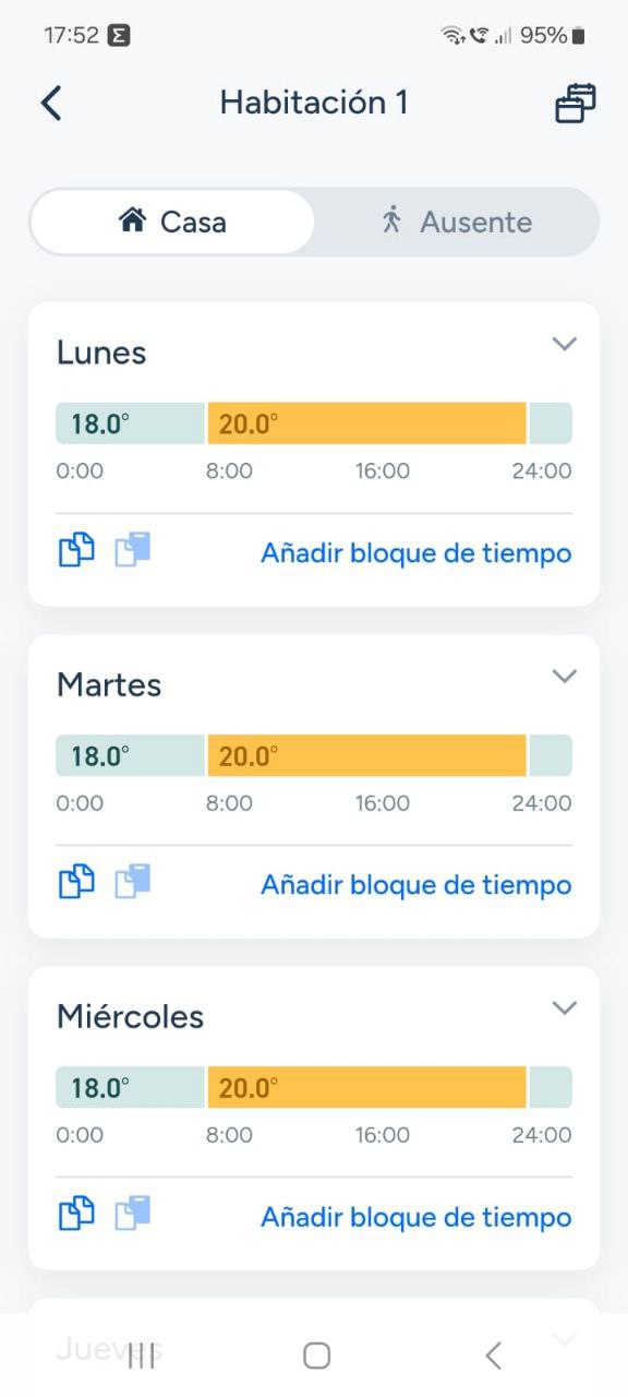 En la práctica, esto se traduce en una latencia casi nula. Al modificar la temperatura desde el teléfono móvil, la orden viaja localmente y la caldera responde en fracciones de segundo. Además, esta arquitectura de red garantiza el procesamiento local: si la conexión a internet de la vivienda sufre una caída, pero la red Wi-Fi y los enrutadores Thread (como un Apple TV o un Nest Hub) siguen funcionando, las automatizaciones domésticas y el control desde la red local continuarán operando sin la más mínima interrupción.