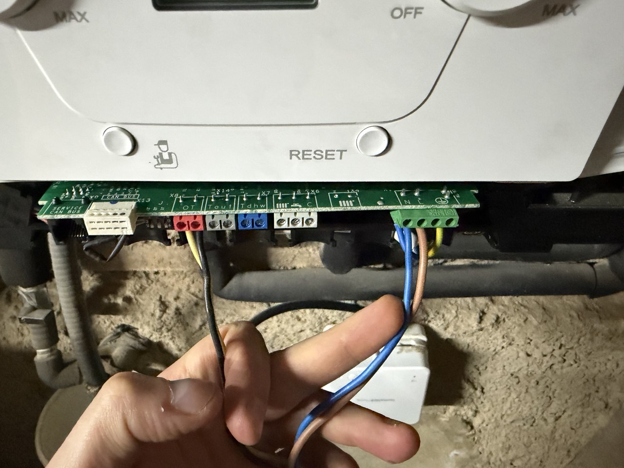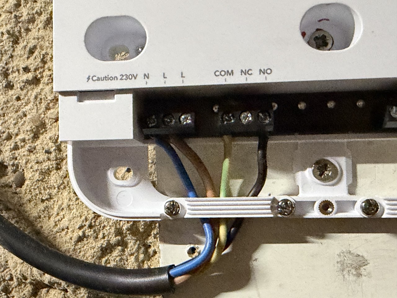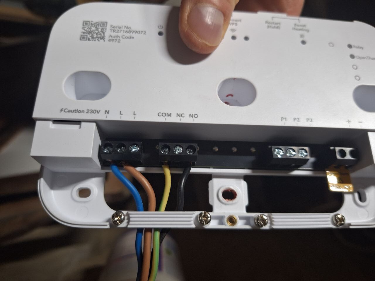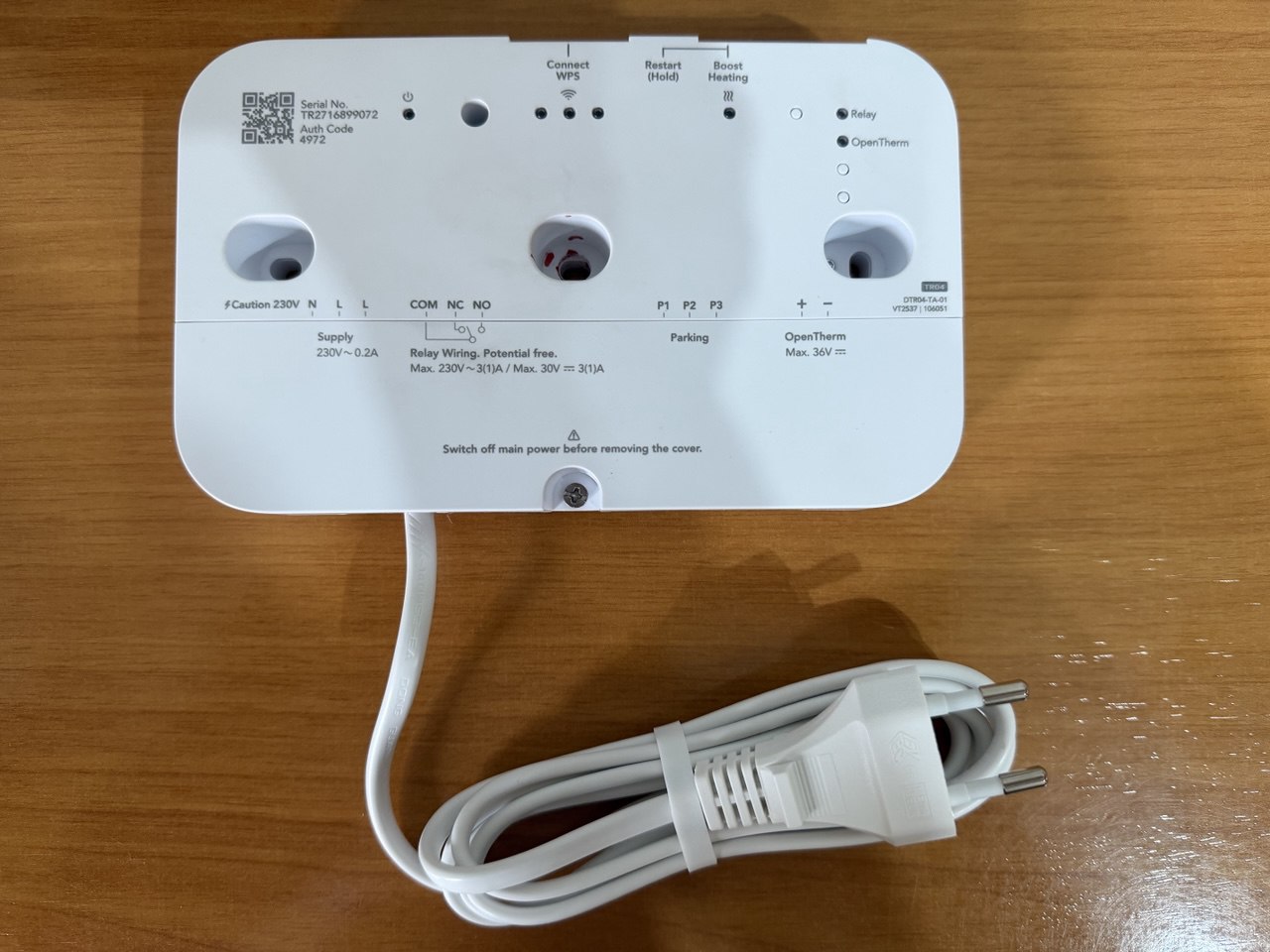 En las fotos a continuación, podéis ver como conecté el dispositivo inalámbrico a la caldera mediante relé, y también prescindí del cable de corriente que viene incorporado para alimentarlo directamente de la caldera (sólo haced esto en caso de tener conocimientos técnicos). El termostato basta con conectarlo a nuestra red wifi y ya queda completamente operativo.