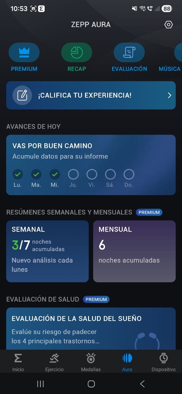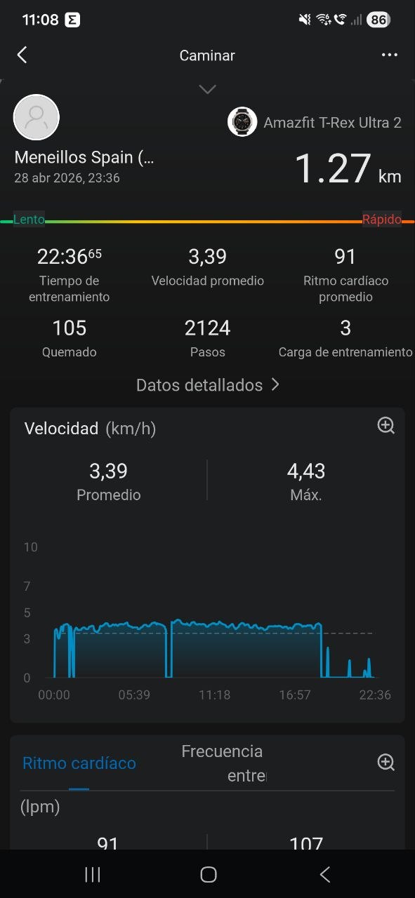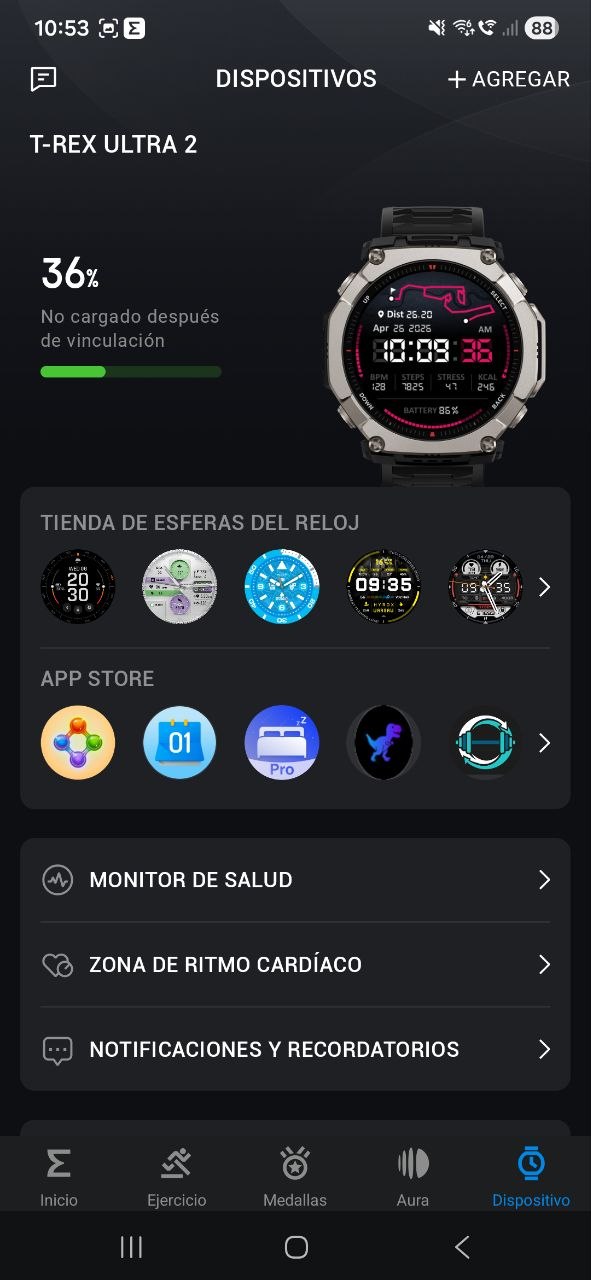 El proceso de vinculación inicial es rápido e intuitivo. Al encender el dispositivo por primera vez, la pantalla muestra un código QR que, al ser escaneado con la aplicación Zepp desde el smartphone, inicia un emparejamiento por Bluetooth que apenas toma un par de minutos, incluyendo la transferencia de los perfiles de usuario y las preferencias de unidades métricas.