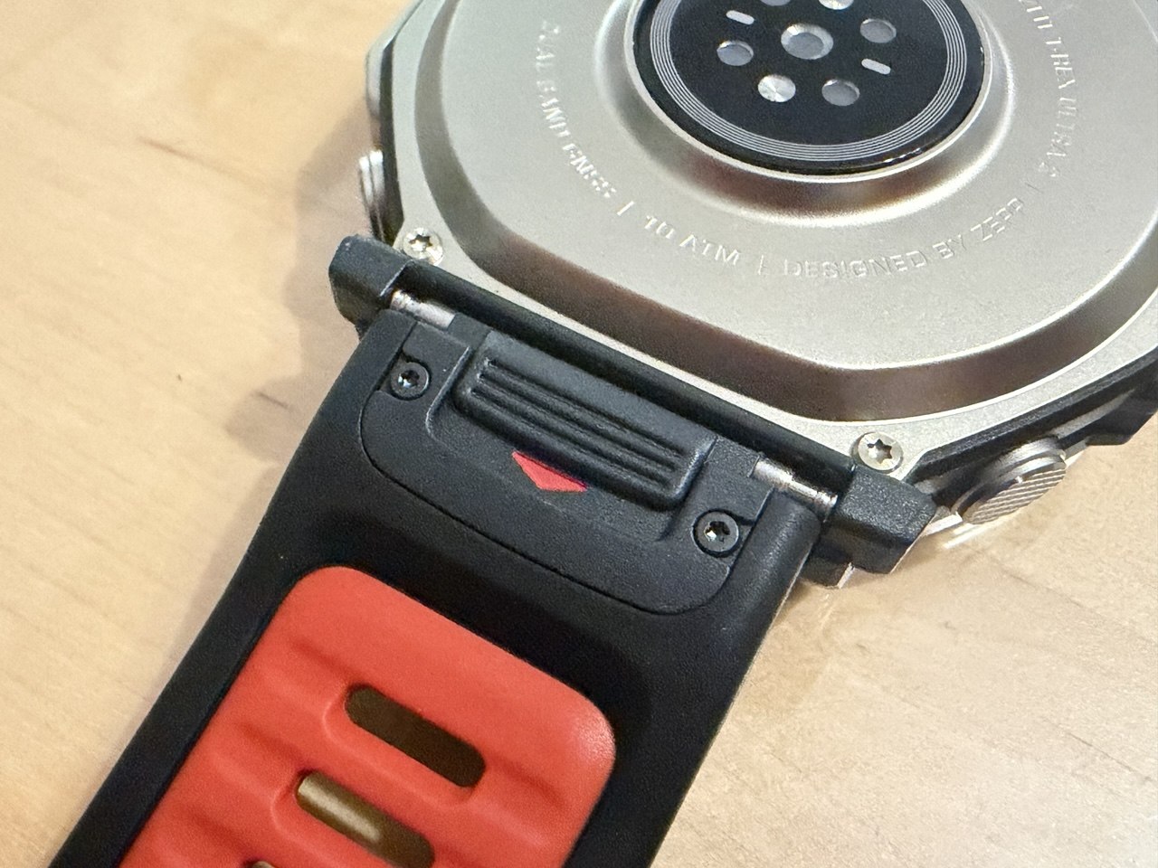 En cuanto a la ergonomía, la correa incluida es de silicona de alta resistencia a la tracción con un ancho de 26 milímetros y cierre de hebilla metálica clásica. Cuenta con ranuras de evacuación de sudor y agua, adaptándose bien al contorno de la muñeca. No obstante, debido a las generosas dimensiones de la caja de titanio y la rigidez de las asas, no es el reloj más cómodo para usuarios con muñecas estrechas (por debajo de los 16 centímetros de circunferencia), ni desde luego el dispositivo ideal para llevar disimulado bajo los estrechos puños de una camisa de vestir o un traje formal.