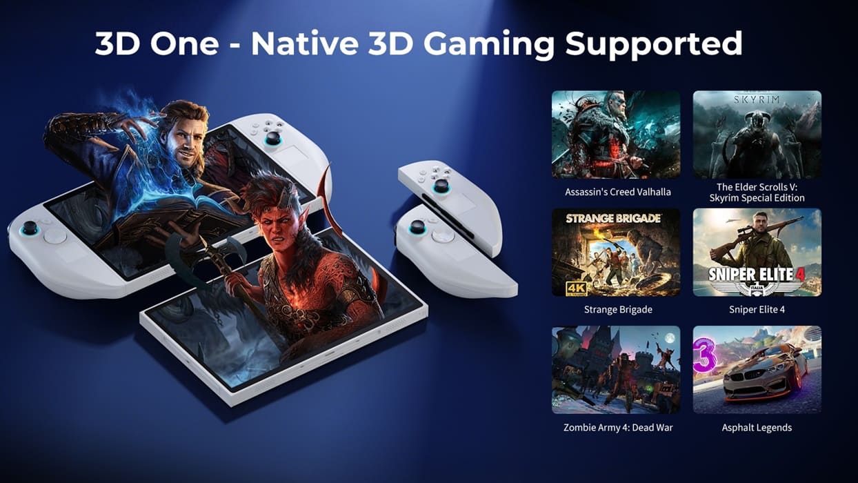 La Abxylute 3D One se presentó inicialmente en agosto de 2025 como la primera portátil PC del mundo con un panel 3D sin gafas, una tecnología que promete profundidad real sin accesorios externos. La consola incorpora una pantalla de 11 pulgadas, un sistema óptico integrado capaz de generar imágenes estereoscópicas y un conjunto de sensores que ajustan la proyección según la posición del usuario. Además, incluye controladores desmontables, un cargador GaN de 100 W y un conjunto de accesorios que acompañan el paquete inicial del crowdfunding.