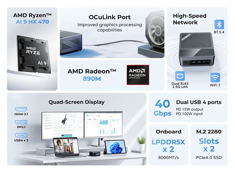 El resultado es un mini PC que no solo apuesta por potencia, sino por un enfoque claro hacia el futuro: IA local, expansión flexible y alto rendimiento en formato compacto.