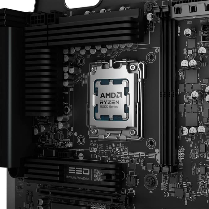 En memoria, admite configuraciones de 32 GB y 64 GB DDR5 con velocidades de hasta 6.400 MT/s, mientras que el almacenamiento se apoya en tres ranuras M.2, con opciones que van desde 1 TB Gen5 hasta configuraciones de 12 TB Gen4.