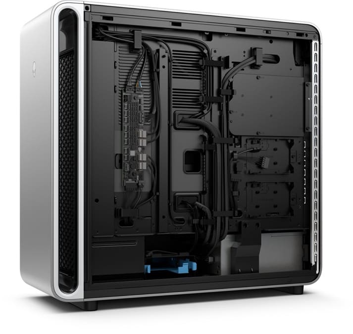 Alienware asegura mejoras respecto a generaciones anteriores, con un sistema que ofrece 13% menos temperatura, 45% menos ruido y hasta 25% más flujo de aire. Además, el chasis soporta tarjetas gráficas de hasta 450 mm de longitud y formato de hasta 4 slots, lo que garantiza compatibilidad con GPUs de gama extrema.