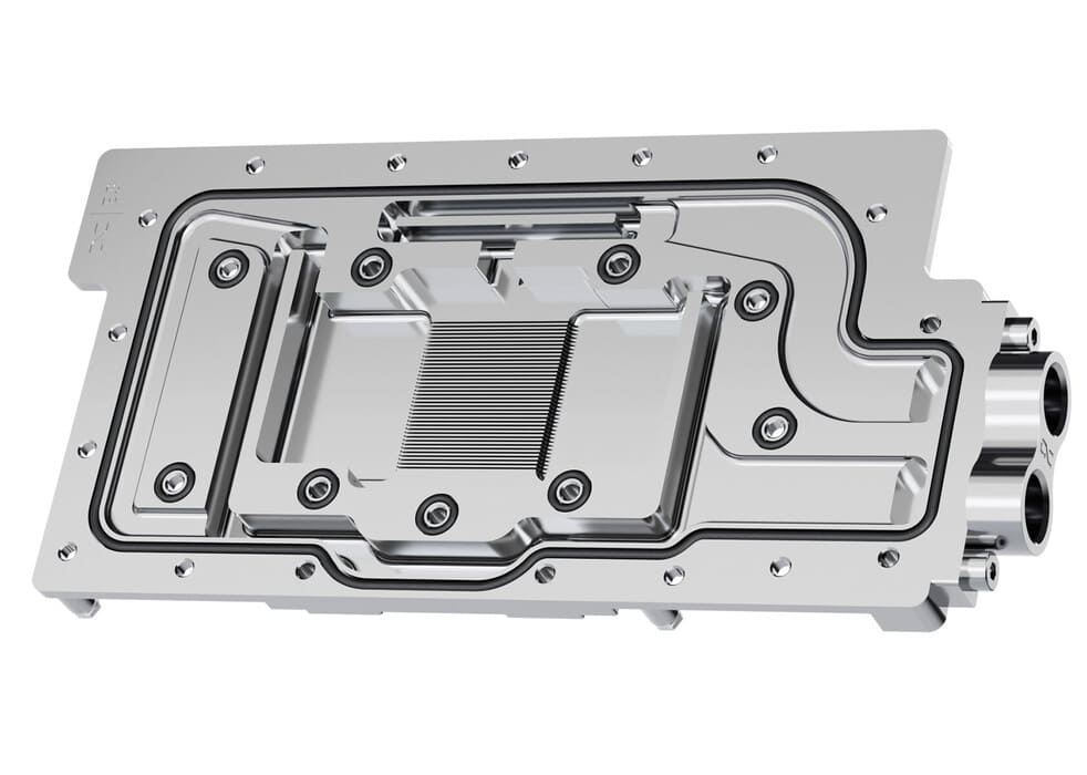 Otro detalle interesante del diseño es la reubicación de las conexiones de entrada y salida del circuito en la parte trasera del bloque, lo que facilita la integración en configuraciones complejas de refrigeración líquida.