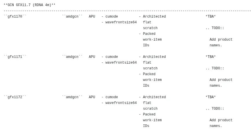 Lo más interesante es que, pese a su nombre, el RDNA 4m pertenece técnicamente a la familia de arquitecturas GFX11, asociada históricamente con RDNA 3. No obstante, estos nuevos objetivos incorporan mejoras de instrucciones propias de RDNA 4, como el soporte para formatos de datos FP8 y BF8, además de instrucciones de matriz WMMA optimizadas para IA. Se trata de un puente arquitectónico entre RDNA 3.5 y RDNA 4 que busca maximizar la eficiencia en movilidad.