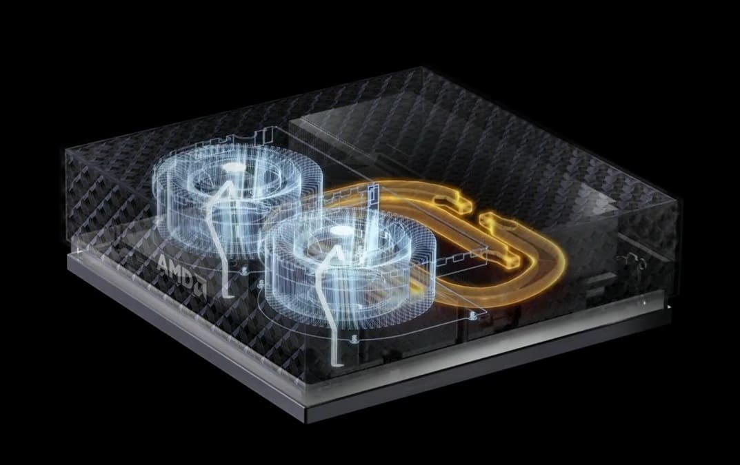 Otro de los puntos destacados del Ryzen AI Halo Box es su sistema de refrigeración personalizado. AMD ha desarrollado una solución específica para el SoC Strix Halo que combina una baseplate dedicada, una red de heatpipes planos de contacto directo, un disipador de canales de aluminio y dos ventiladores laterales que canalizan el flujo de aire de forma eficiente.