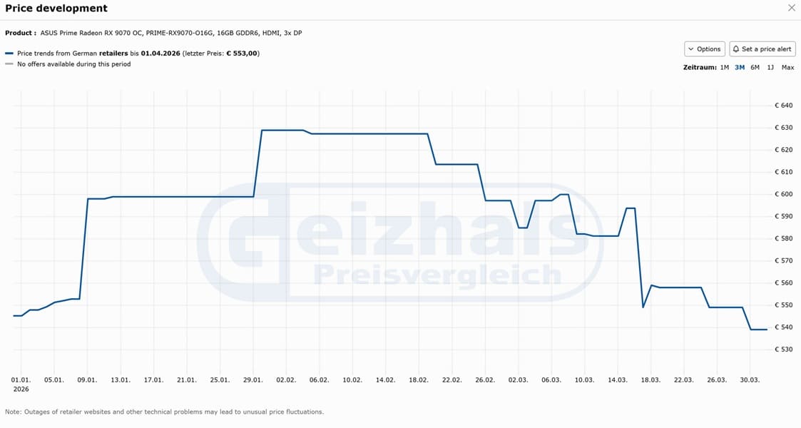 El caso alemán no responde a promociones puntuales, sino a un ajuste estructural. Cuando una ASUS Prime Radeon RX 9070 OC baja a 539€, situándose por debajo de los 629€ oficiales, estamos ante un claro síntoma de exceso de unidades en el canal. Este tipo de caída no se produce si el flujo de producto sigue tensionado.