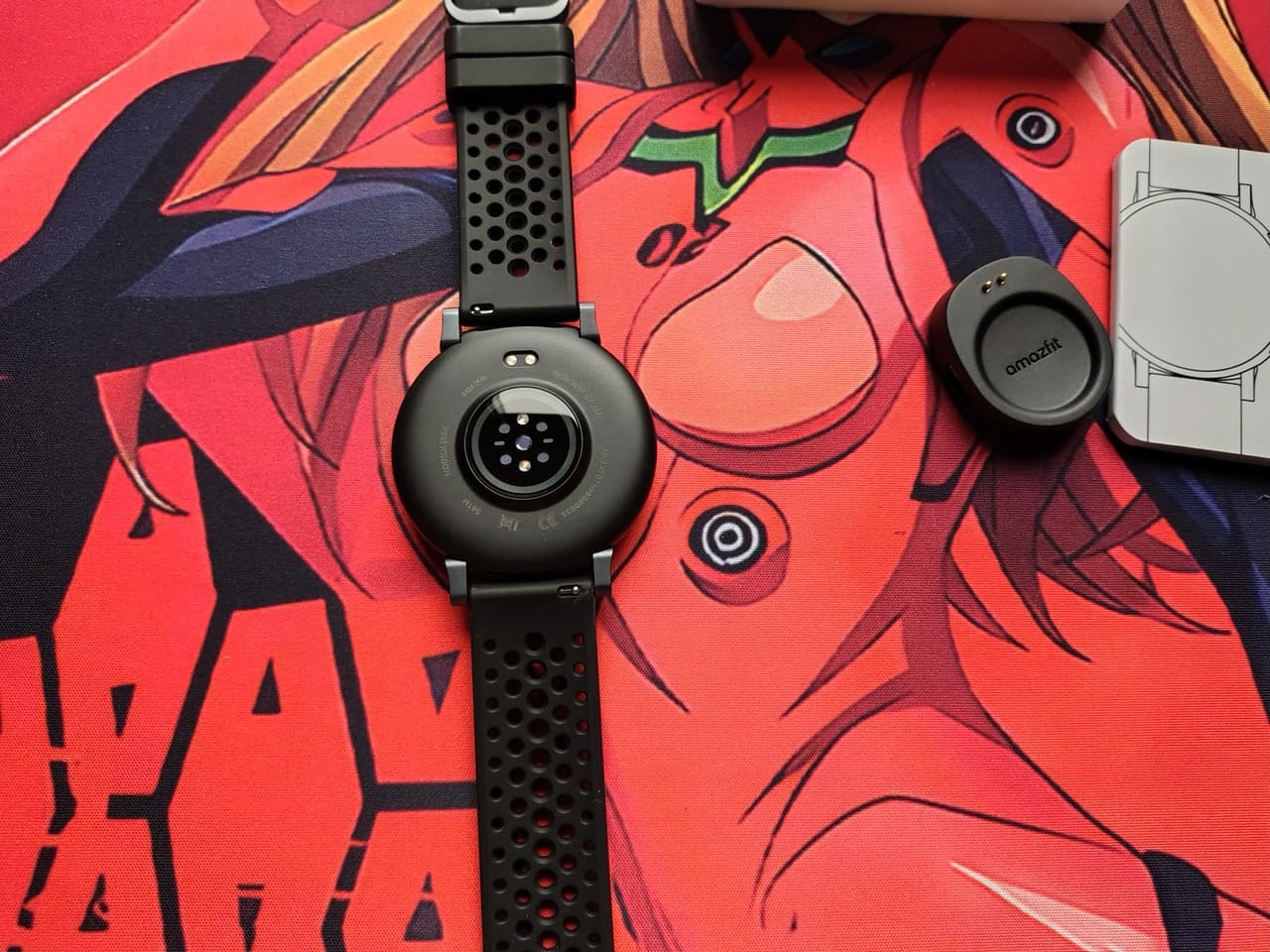El empaquetado me sorprende por su sencillez sin perder la elegancia de otros productos de la marca. Caja limpia, reloj ya con la correa y lo esencial: el cargador magnético USB-C, un librito de instrucciones y poco más. Lo que me ha chocado es que no contenga una segunda correa ya que otros modelos más asequibles de la gama si lo traen.