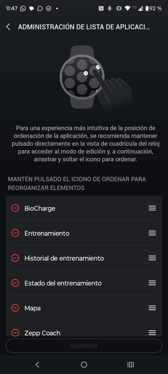 Amazfit anuncia 25 días de autonomía en uso típico. En mis pruebas reales, con notificaciones, siempre On Display apagado, entrenamiento diario y todos los sensores activos, me duró unos 15 días aproximadamente sin tocar ajustes. Con Always On Display habría perdido 5-6 días más. La autonomía puede cumplirse, pero la gracia es poder interactuar con tu teléfono y con tu actividad y eso sí o sí reducirá la autonomía.