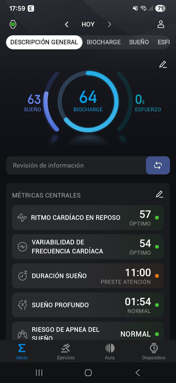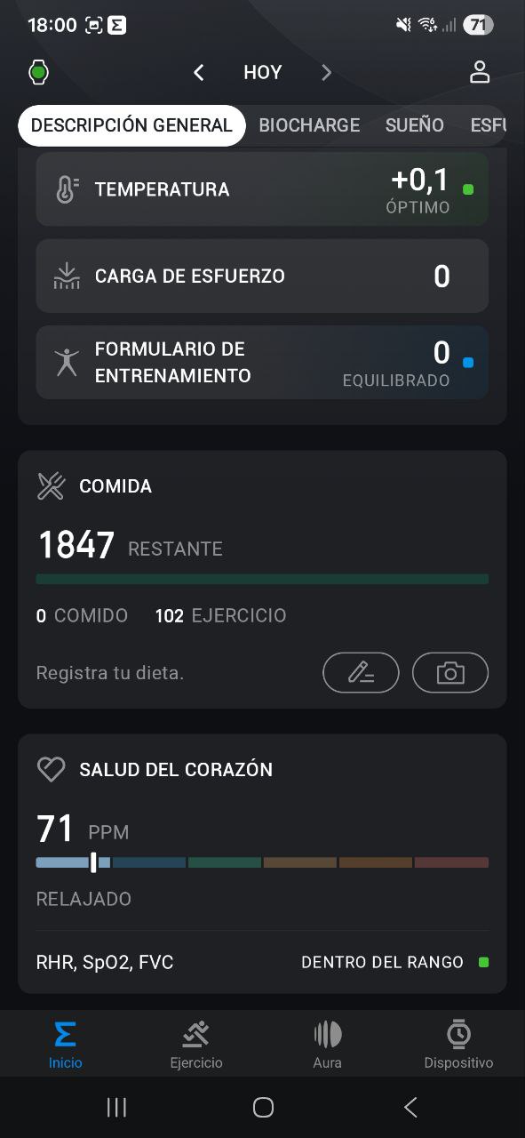 | Sensores | BioTracker 6.0, barómetro, brújula, giroscopio, acelerómetro, SpO2, VO2 Max |