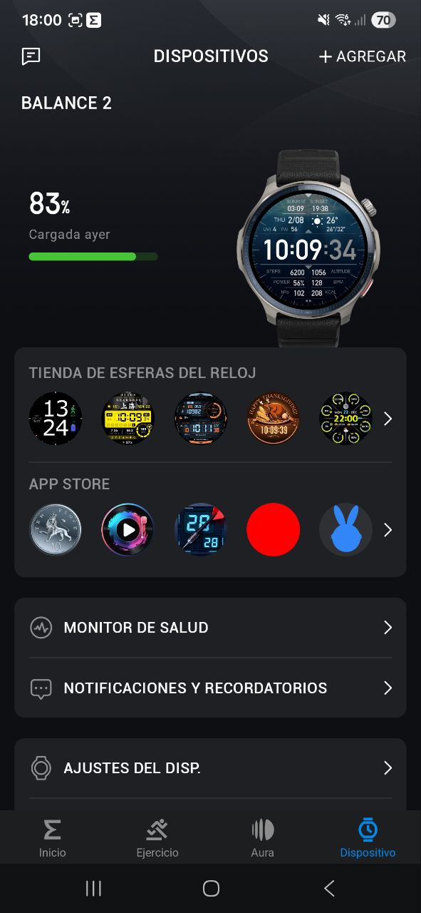 El Amazfit Balance 2 funciona con Zepp OS 3.0, un sistema que ha evolucionado para ofrecer mayor fluidez y estabilidad. La interfaz es intuitiva y permite instalar aplicaciones adicionales desde el ecosistema Zepp. Es compatible con Android 7.0 y iOS 15.0 en adelante, lo que asegura integración con la mayoría de smartphones actuales.