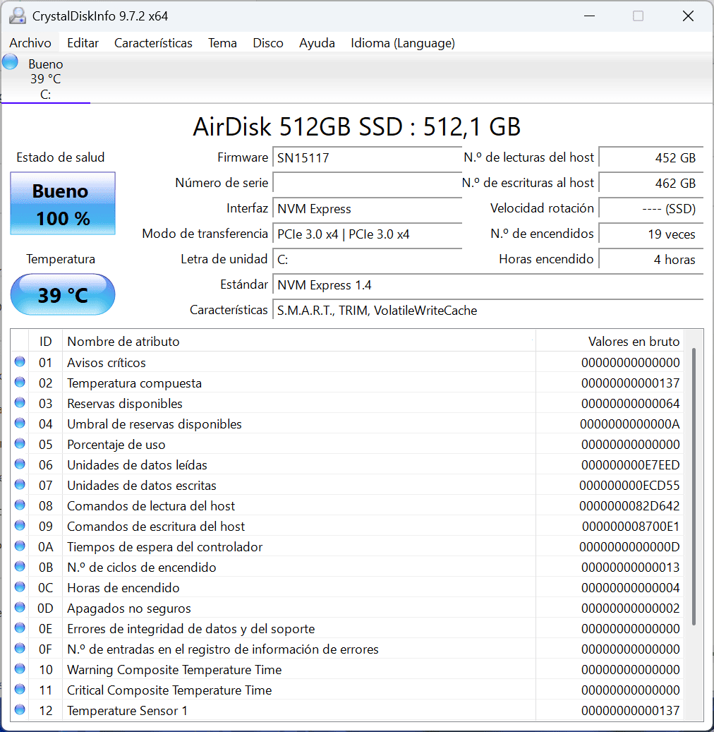 Almacenamiento | 512GB NVMe PCIe 3.0 SSD (ampliable hasta 1TB) |