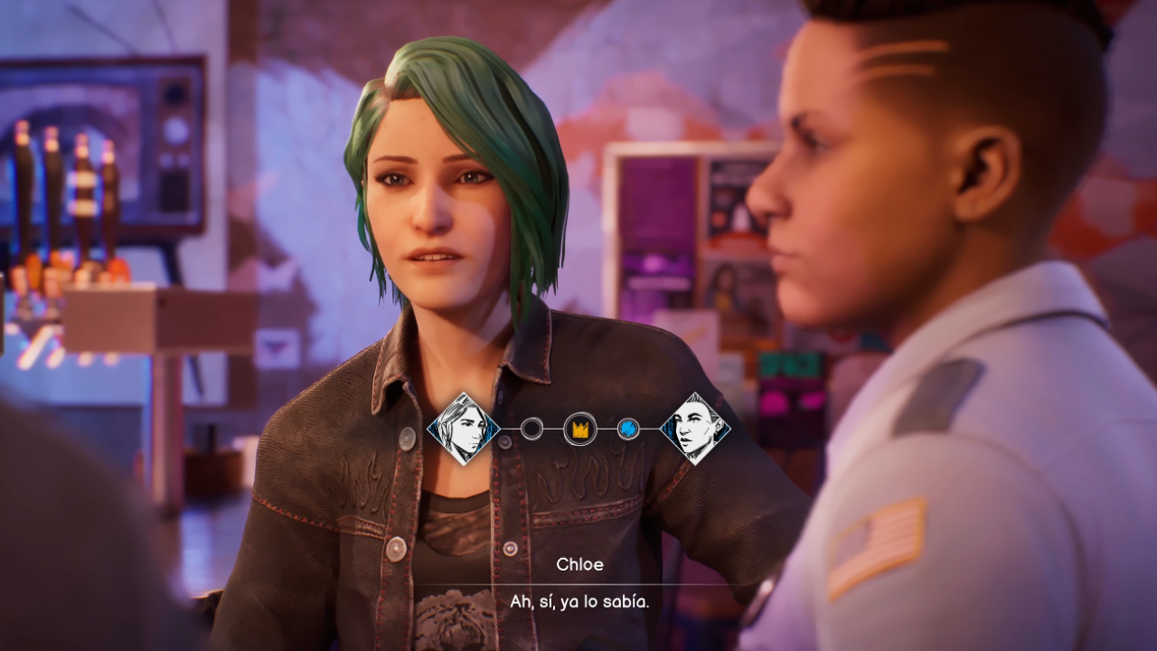 Chloe, por su parte, recupera el sistema de Backtalk de Before the Storm, donde debes elegir las respuestas correctas en cadena para manipular conversaciones. Es una mecánica interesante en concepto, pero se usa tan pocas veces a lo largo de la aventura y de forma tan opcional que acaba sintiéndose como un añadido testimonial. La alternancia entre ambas protagonistas es la novedad más relevante en lo jugable, y funciona razonablemente bien para variar el ritmo, pero no transforma la experiencia de ninguna forma significativa.