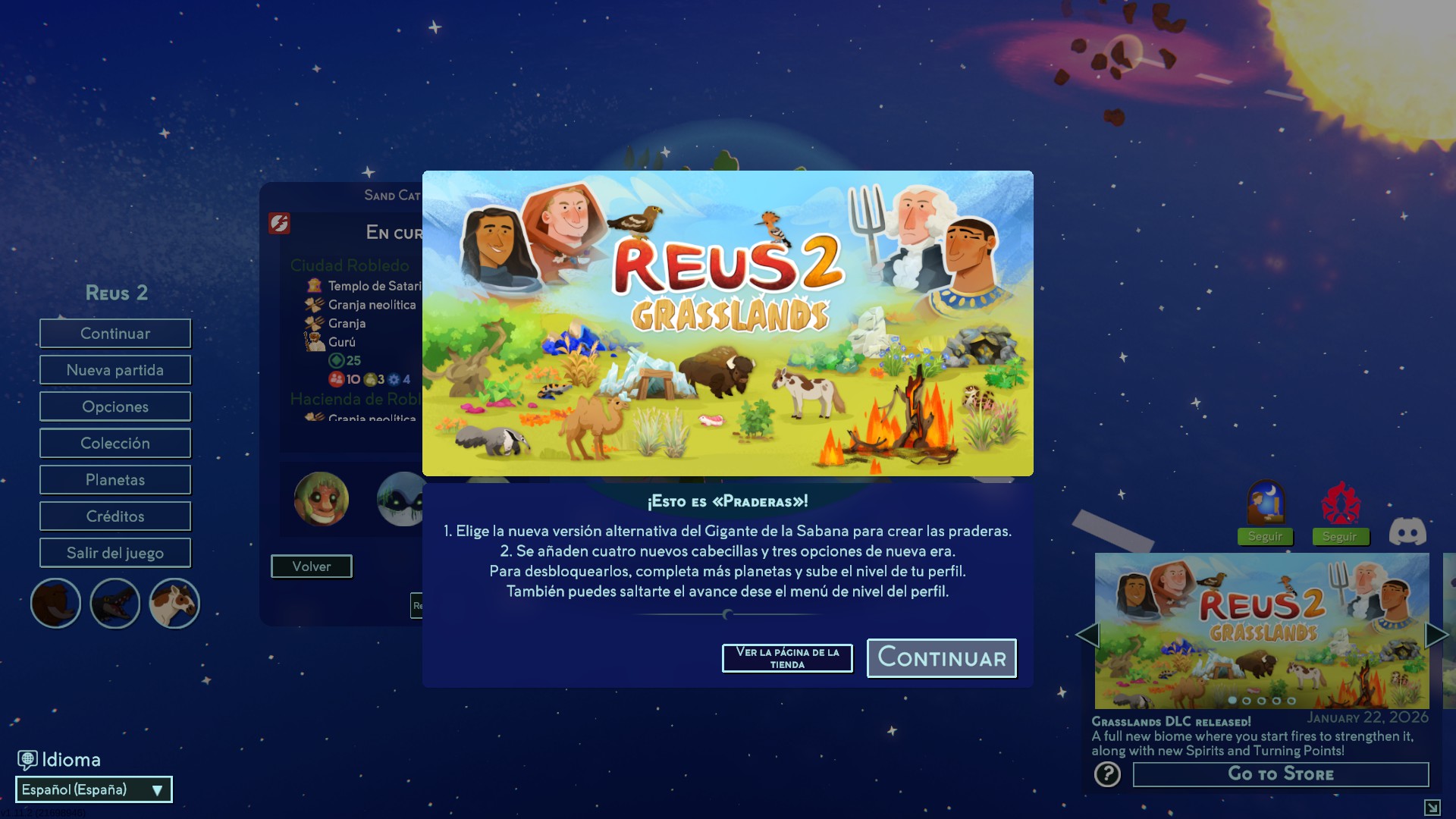 Hoy en Fanáticos del Hardware os traemos Reus 2, la esperada secuela del particular simulador de Abbey Games que amplía y profundiza su propuesta de gestión ecológica y evolución humana. El título se lanzó originalmente en PC el 28 de mayo de 2024, fecha desde la que hemos podido analizar con calma su ambicioso entramado de sistemas y su marcada identidad estética. Meses después, el juego amplió su alcance con versiones para Xbox Series X|S y Nintendo Switch, disponibles desde el 23 de octubre de 2025. A esta base se suma ahora Praderas, su último DLC, publicado el 22 de enero de 2026 en PC, una expansión que introduce un nuevo bioma y mecánicas.