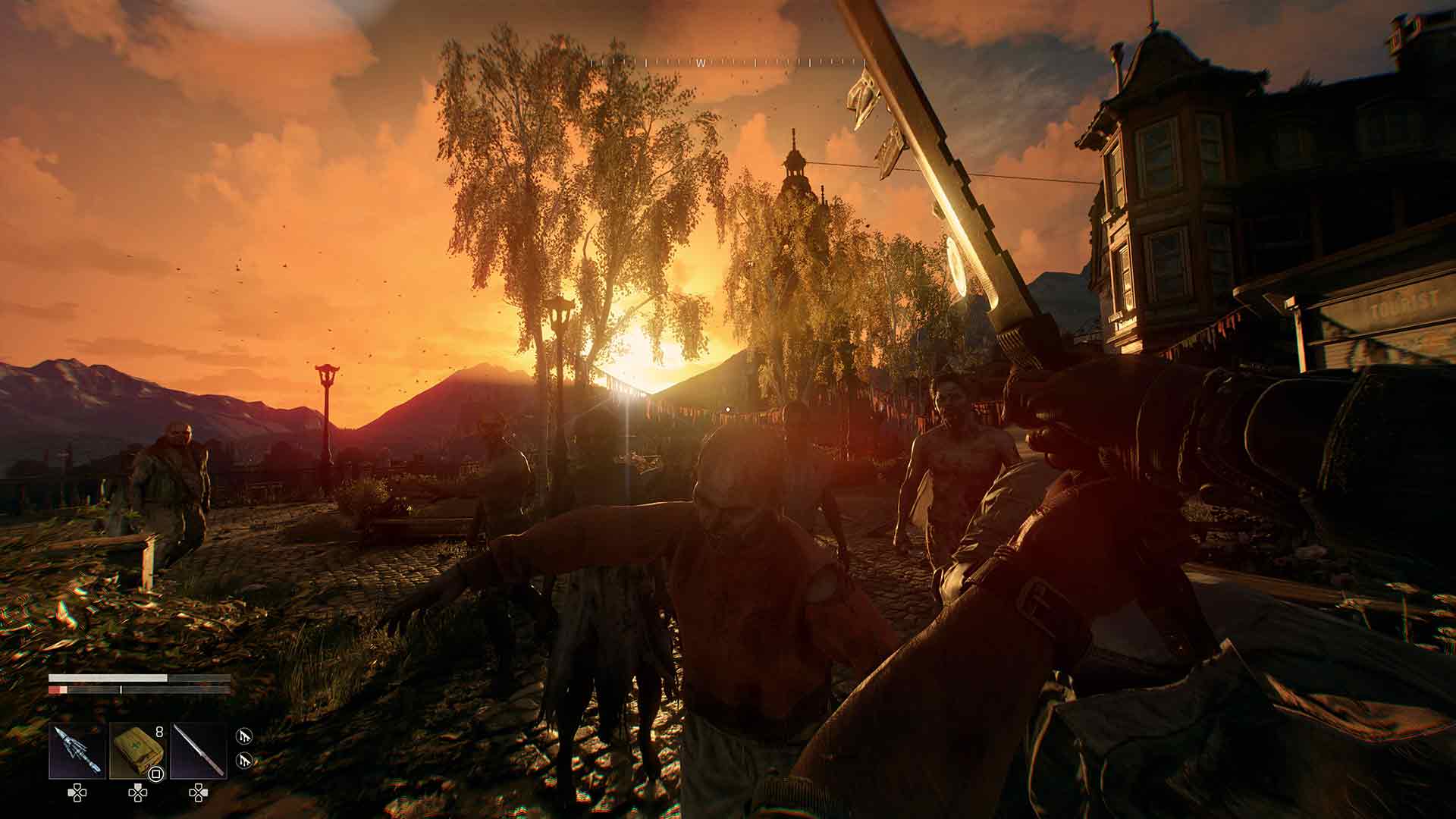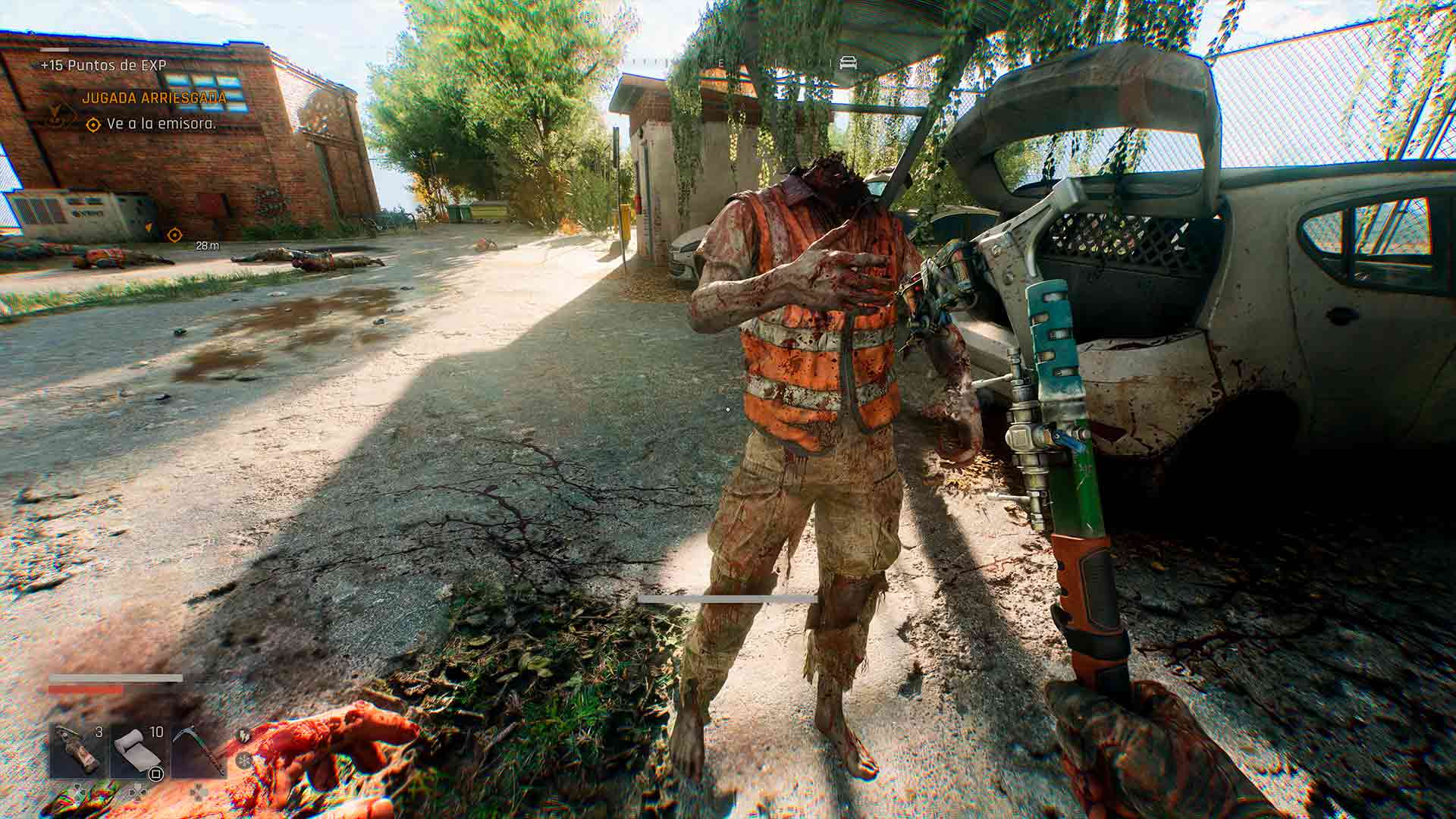 Yo, personalmente, he hecho frente a los mordedores generalmente con un arma cortante, como un hacha o una espada, con una modificación eléctrica. Y, lejos de ser difíciles, en Dying Light The Beast sí que hay que enfocar bien los enfrentamientos por la facilidad con la que los enemigos te rodean. Alguna que otra vez he muerto mientras cortaba cabezas por recibir golpes de más y acumular daño autoinfligido por los arcos o el fuego que yo mismo he generado.