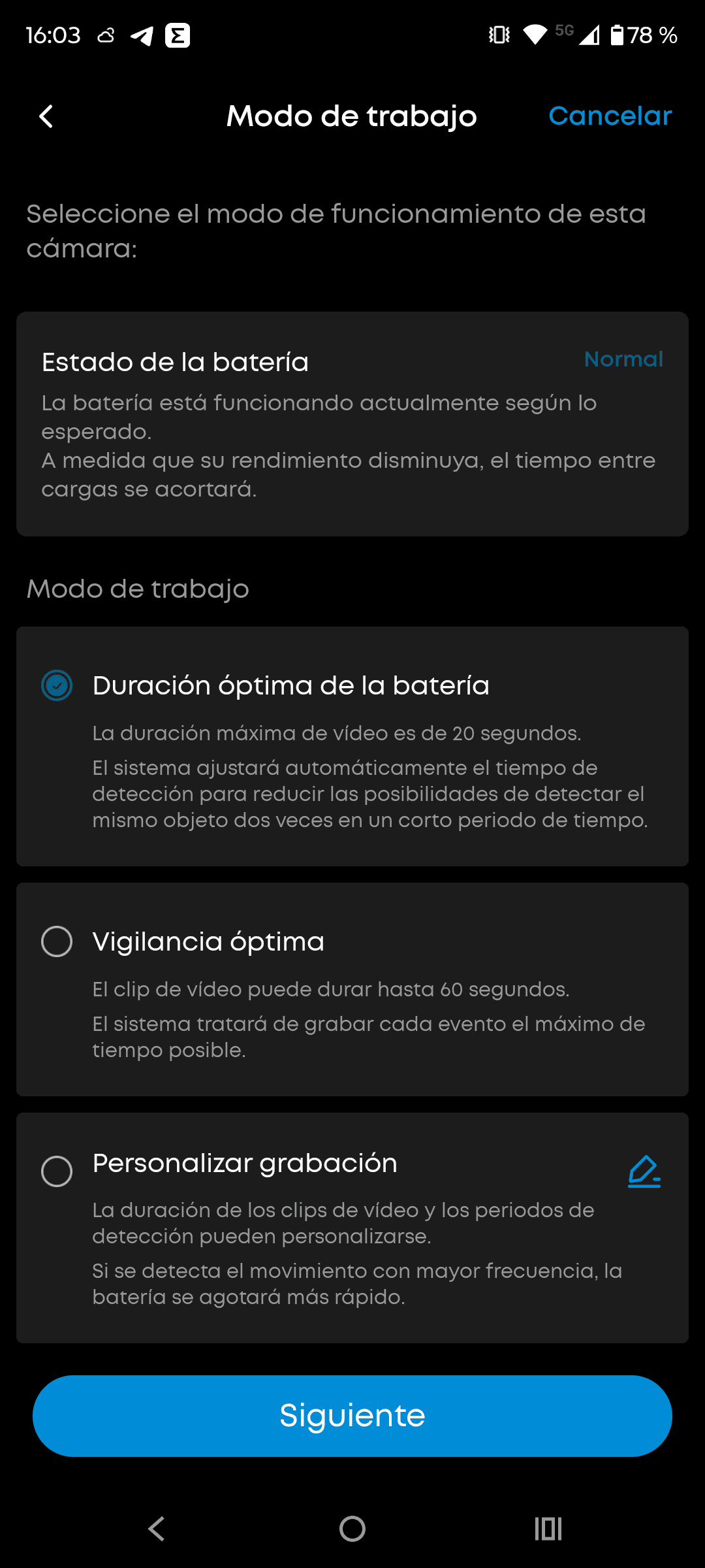 - «Duración óptima de batería»: clips de 20 segundos, menos sensibilidad. Gasto ~120 mAh/día.