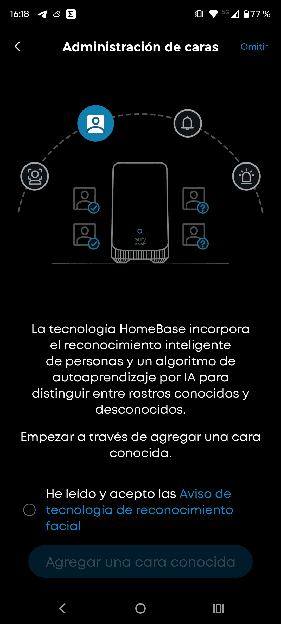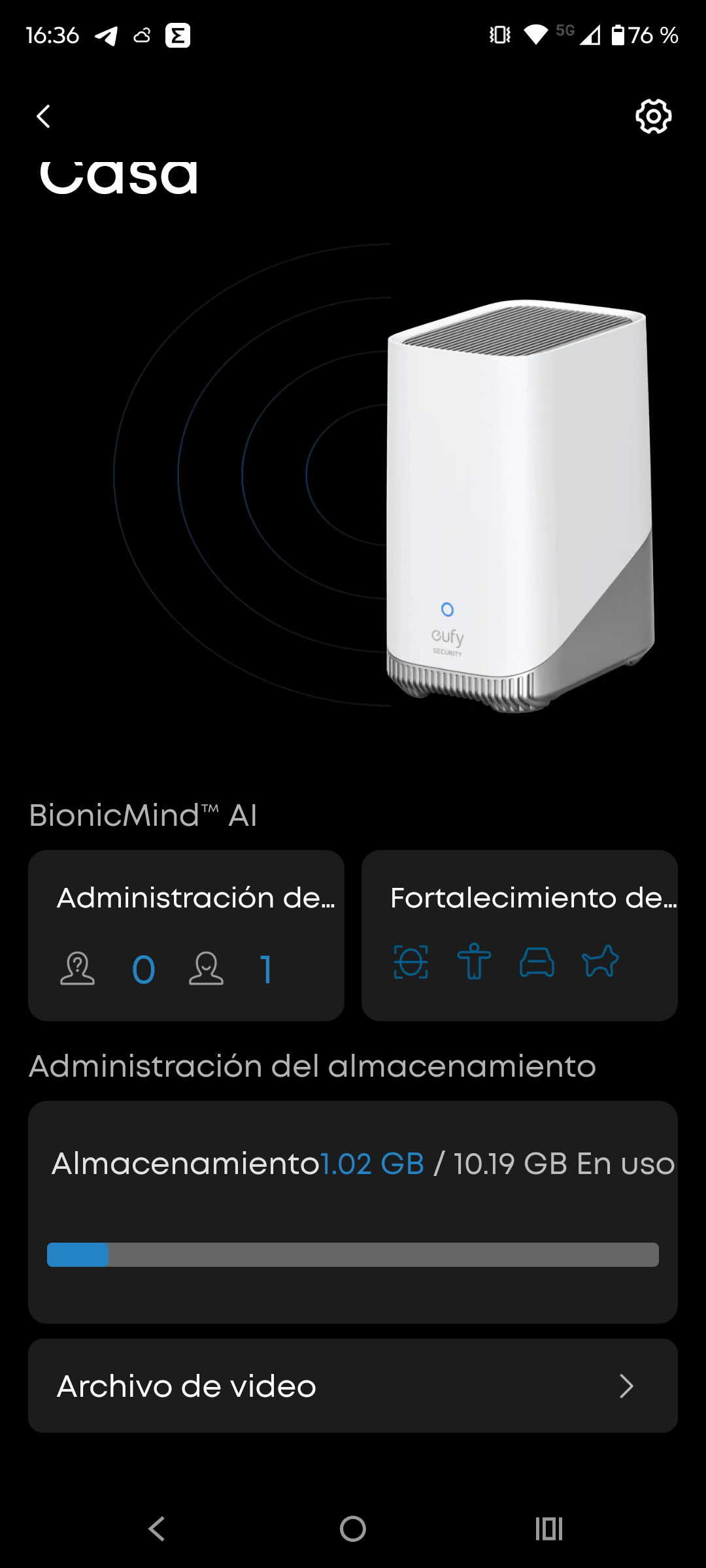 La configuración de software es aún más sencilla. Descargas la aplicación de eufy (disponible en iOS y Android), secaneas el código QR Y la app detecta automáticamente que necesitas una HomeBase y te guía el setup paso a paso. Luego haces lo mismo con la base. De inicio a vigilancia funcional: ~5 minutos por dispositivo.