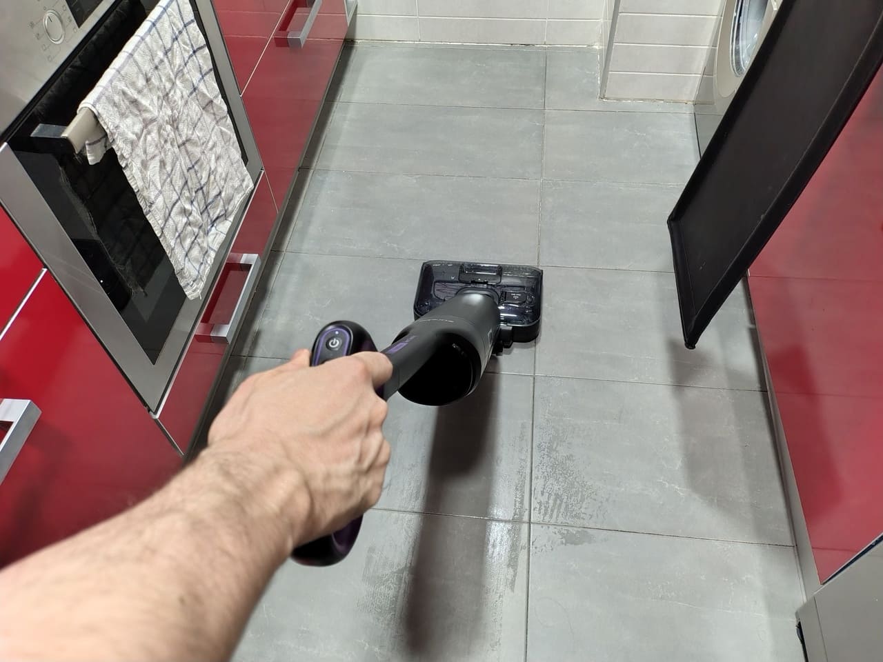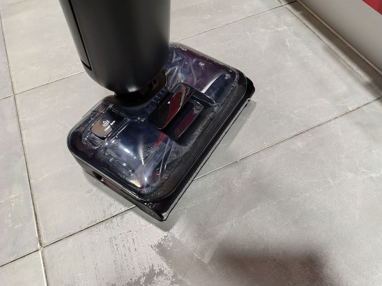 En mis pruebas del día a día, se comporta especialmente bien con manchas recientes de comida, gotas de cola cao, huellas marcadas o el clásico rastro de agua que queda al salir de la ducha. La combinación de rulo y succión hace que en muchas ocasiones baste con una sola pasada para dejar el suelo en buen estado; solo en suciedad muy seca o incrustada pueden hacer falta dos o tres pasadas en cruz.