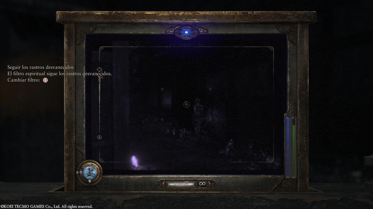 Los filtros son la guinda: además del estándar, tienes otros tres con efectos distintos, como ralentizar fantasmas, restaurar objetos desaparecidos, revelar rastros espectrales o romper sellos de sangre en puertas y altares. Activar sus disparos especiales consume voluntad (una especie de stamina espiritual), así que te toca decidir cuándo gastarla para rematar un enemigo o resolver un puzle.