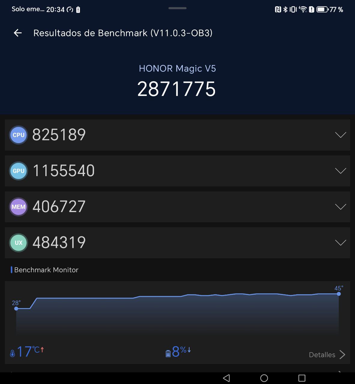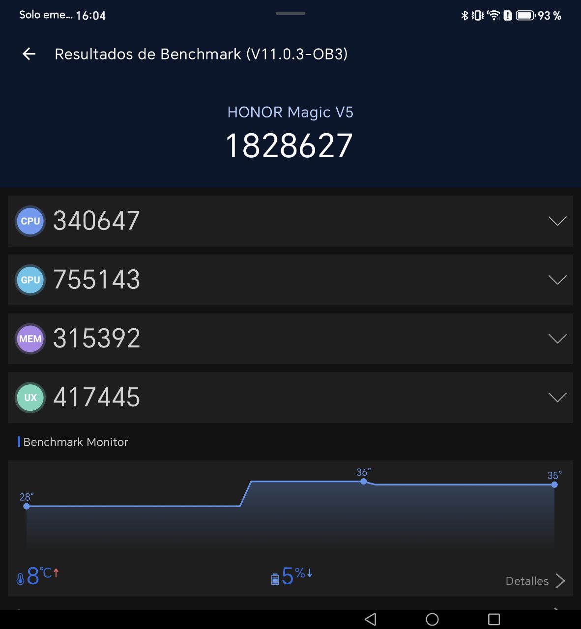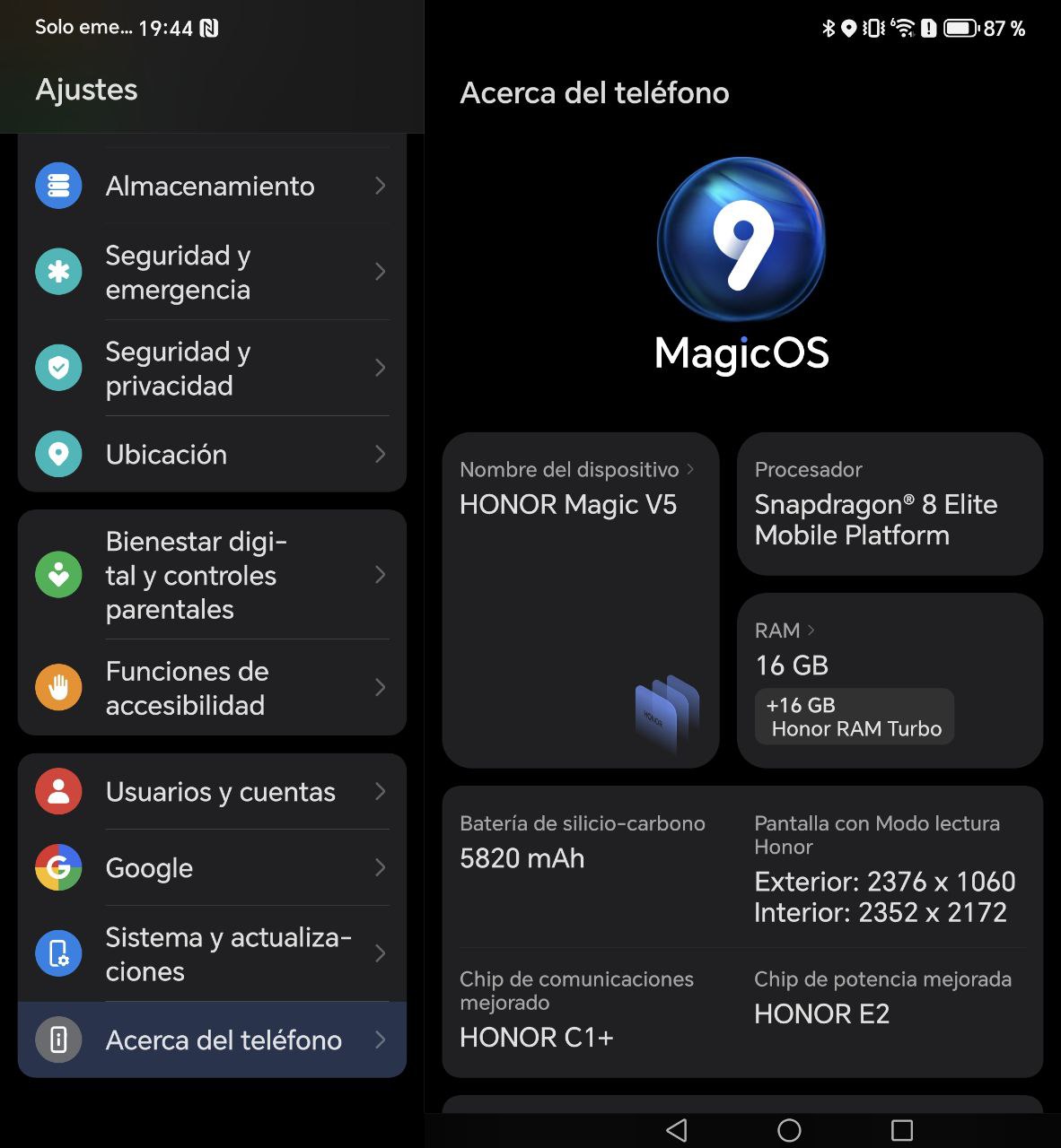 La batería del Magic V5 alcanza los 5.820 mAh, una cifra notable para un plegable tan delgado. En la práctica, ofrece una jornada completa de uso intensivo, con posibilidad de llegar a día y medio en un uso más moderado.