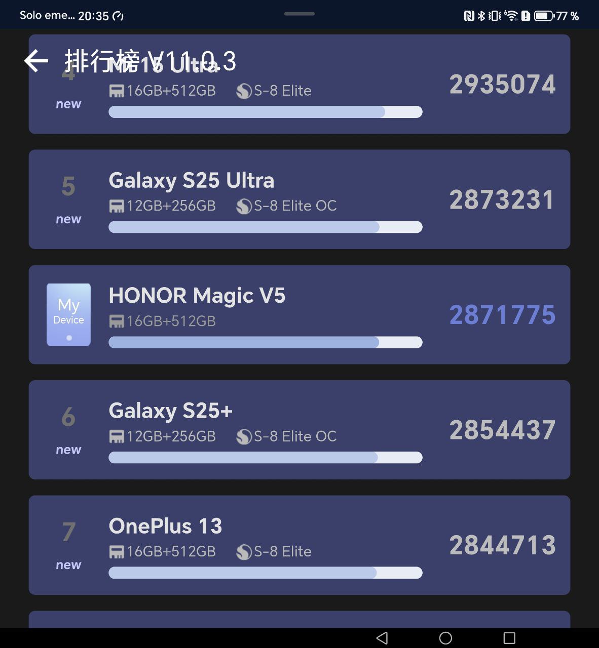 El Magic V5 no renuncia a la potencia. Está equipado con el Qualcomm Snapdragon 8 Elite, acompañado de 16 GB de RAM LPDDR5x y 512 GB de almacenamiento UFS 4.1. Esta configuración lo sitúa en la élite de los smartphones Android de 2025.