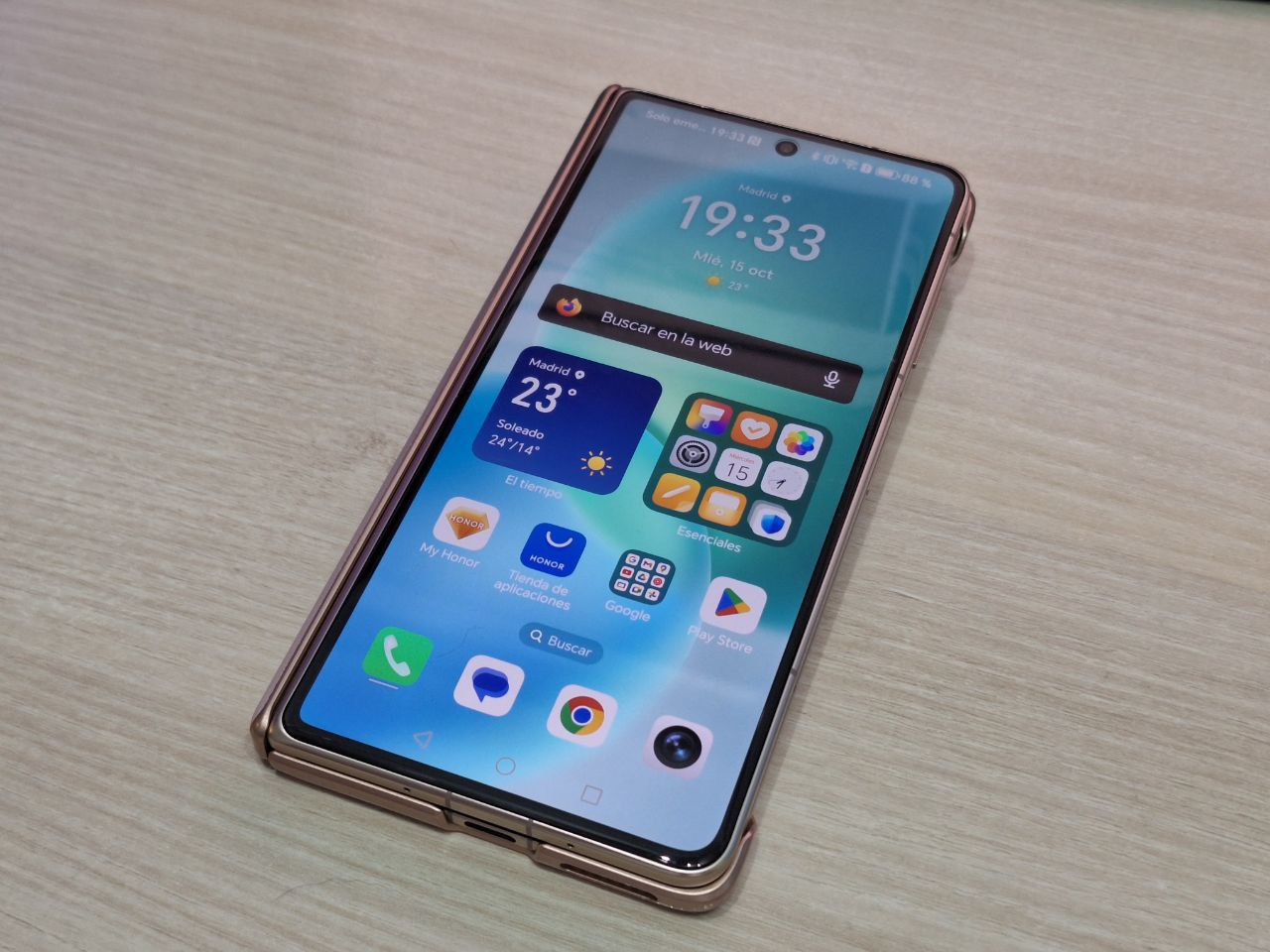 La bisagra es uno de los elementos más críticos en un plegable, y aquí HONOR ha trabajado en un mecanismo que reduce al mínimo el pliegue visible en la pantalla interior. Aunque no desaparece por completo, es menos perceptible que en generaciones anteriores y no interfiere en la experiencia diaria.