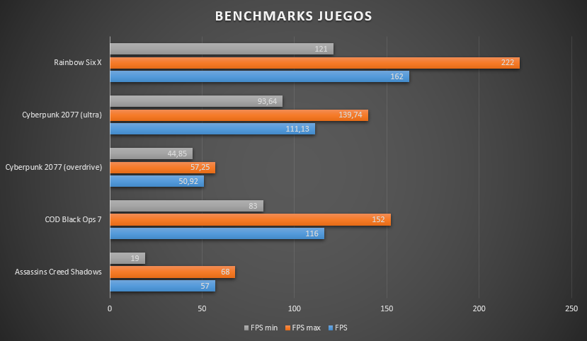 El procesador Intel Core Ultra 9 275HX y la RTX 5080 convierten al Omen Max 16 en una máquina capaz de ejecutar cualquier título actual en configuraciones ultra, incluso en resoluciones superiores a 1440p.