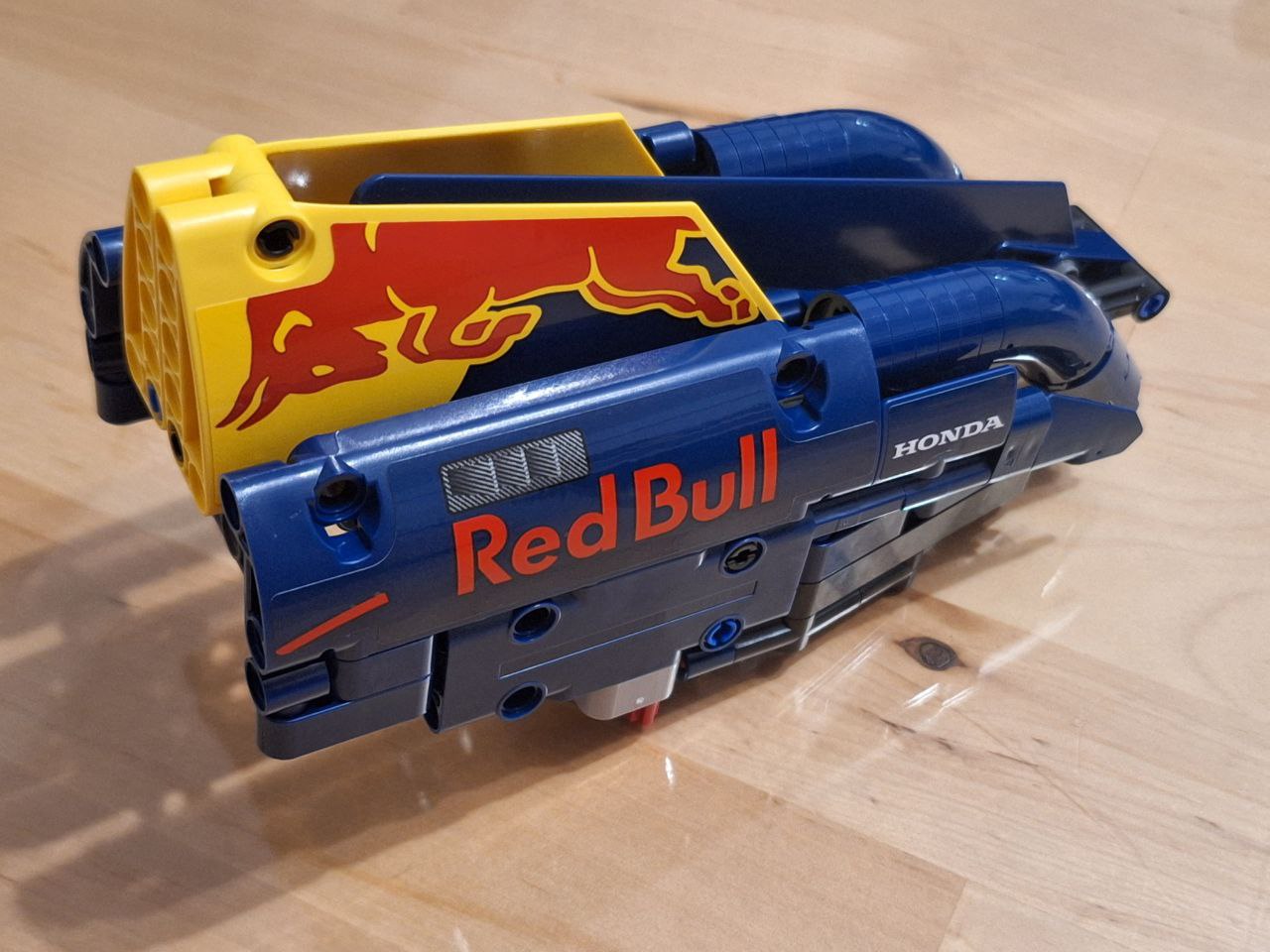 | Elementos estéticos | Alerón delantero y trasero, halo, neumáticos anchos, stickers oficiales Red Bull Racing |