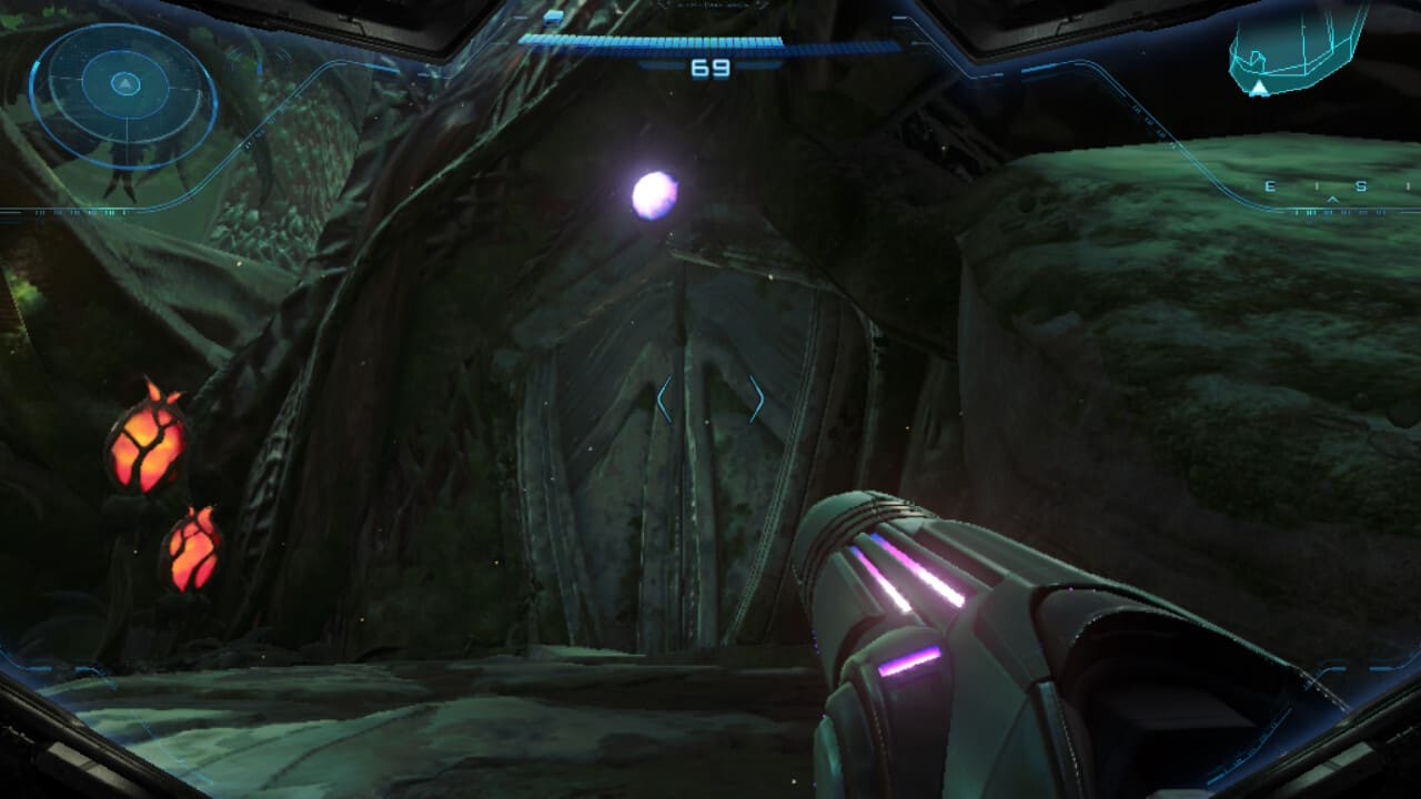 La moto está bien con u buen control. Pero aquí está el problema: en un Metroid, los viajes no deberían ser así. En los mejores juegos de la saga, volvías a zonas anteriores porque descubrías atajos, porque aprendías a leer el mapa y encontrabas nuevas rutas. Aquí tienes que cruzar tres kilómetros de nada para llegar al siguiente tema musical. Y es en esas idas y venidas donde Retro Studios se ha visto obligada a decirte todo. Dónde están los power-ups, adónde tienes que ir, cuál es tu objetivo. Porque sin esos atajos naturales, sin esa interconexión laberíntica, el juego no puede dejar que te pierdas. Te perderías de verdad. Y eso es malo.