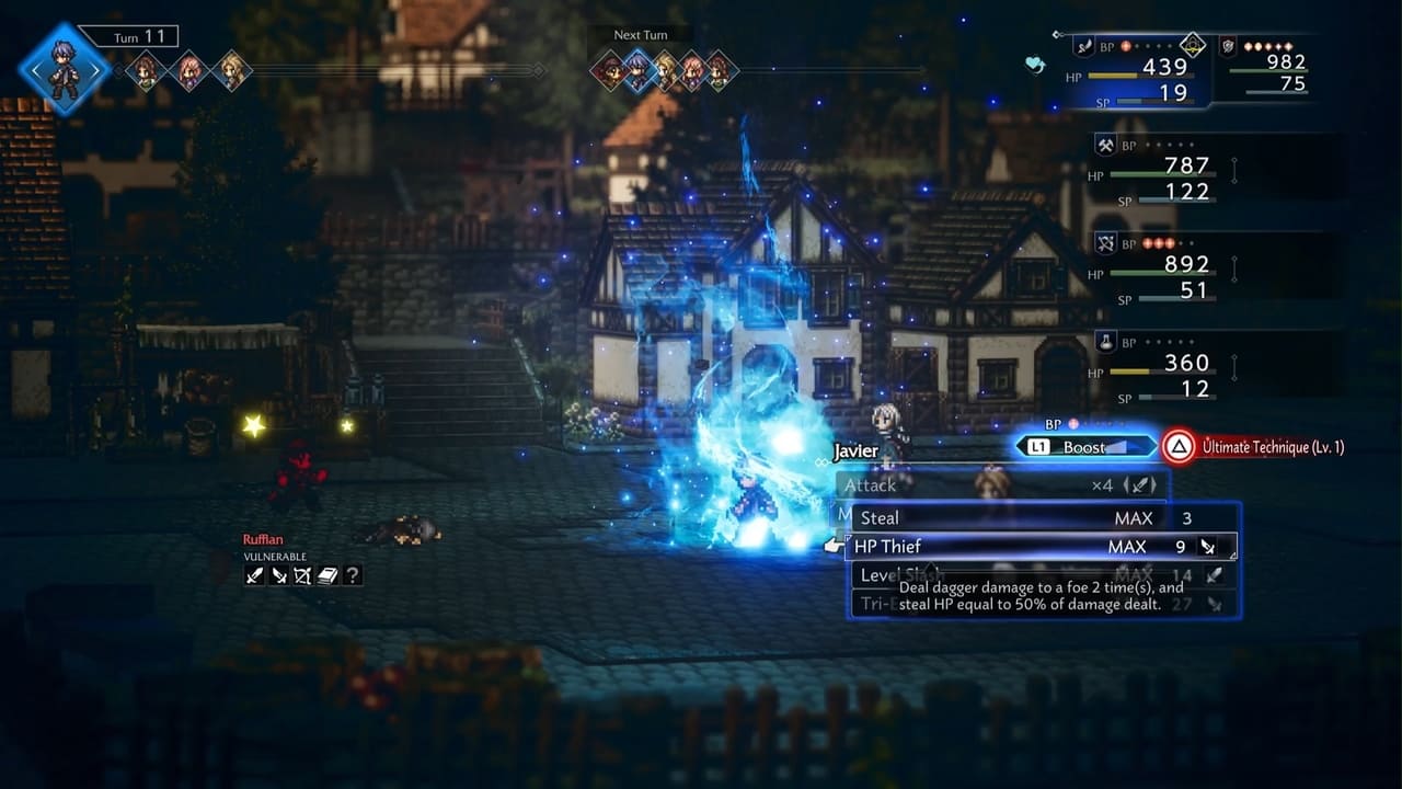 Aquí está el lo que fascina y de por qué Octopath Traveler 0 sigue siendo adictivo a las 80 horas. El sistema de combate por turnos continúa con lo que hizo funcionar a los juegos anteriores, pero añade complejidad.