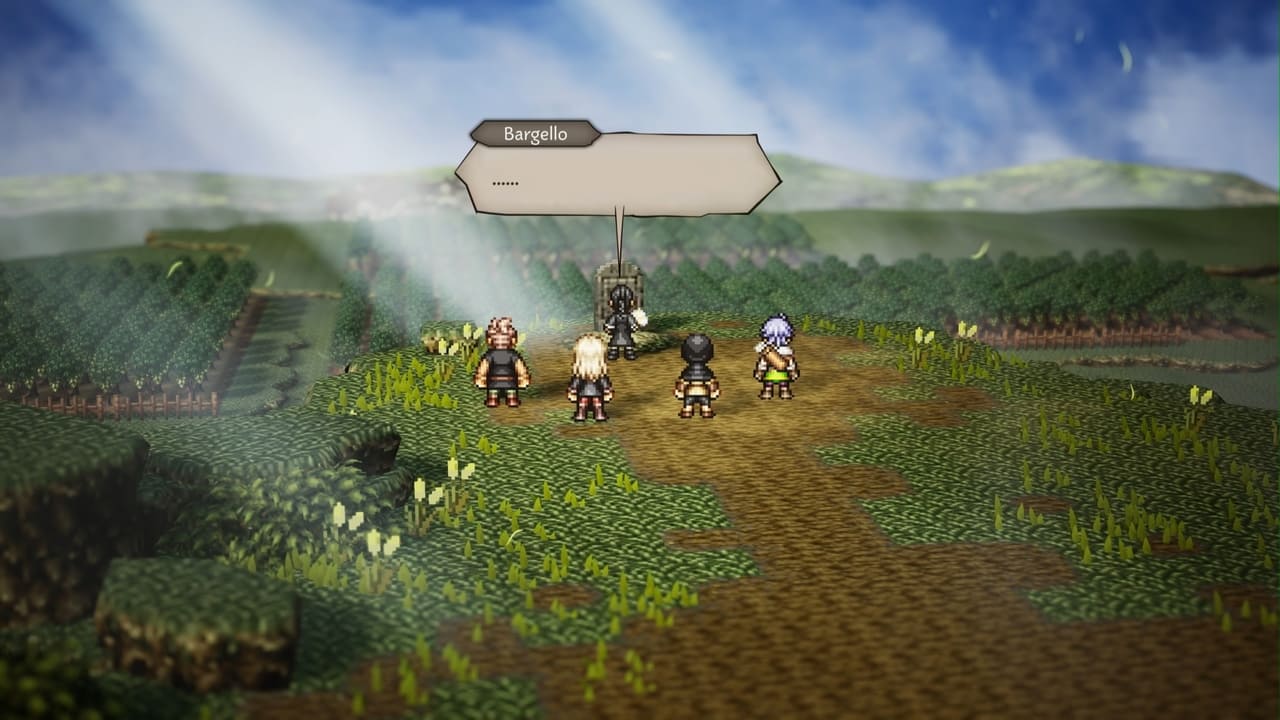 El tono es oscuro en ciertos momentos, especialmente cuando descubres quiénes son los villanos y por qué destruyeron tu hogar. Square Enix se ha permitido profundizar en sus motivaciones de manera que no esperaba en un juego de HD-2D. Hay escenas extensas donde se revelan secretos, y el ritmo de revelaciones funciona bien, aunque al principio puede parecer pausado.