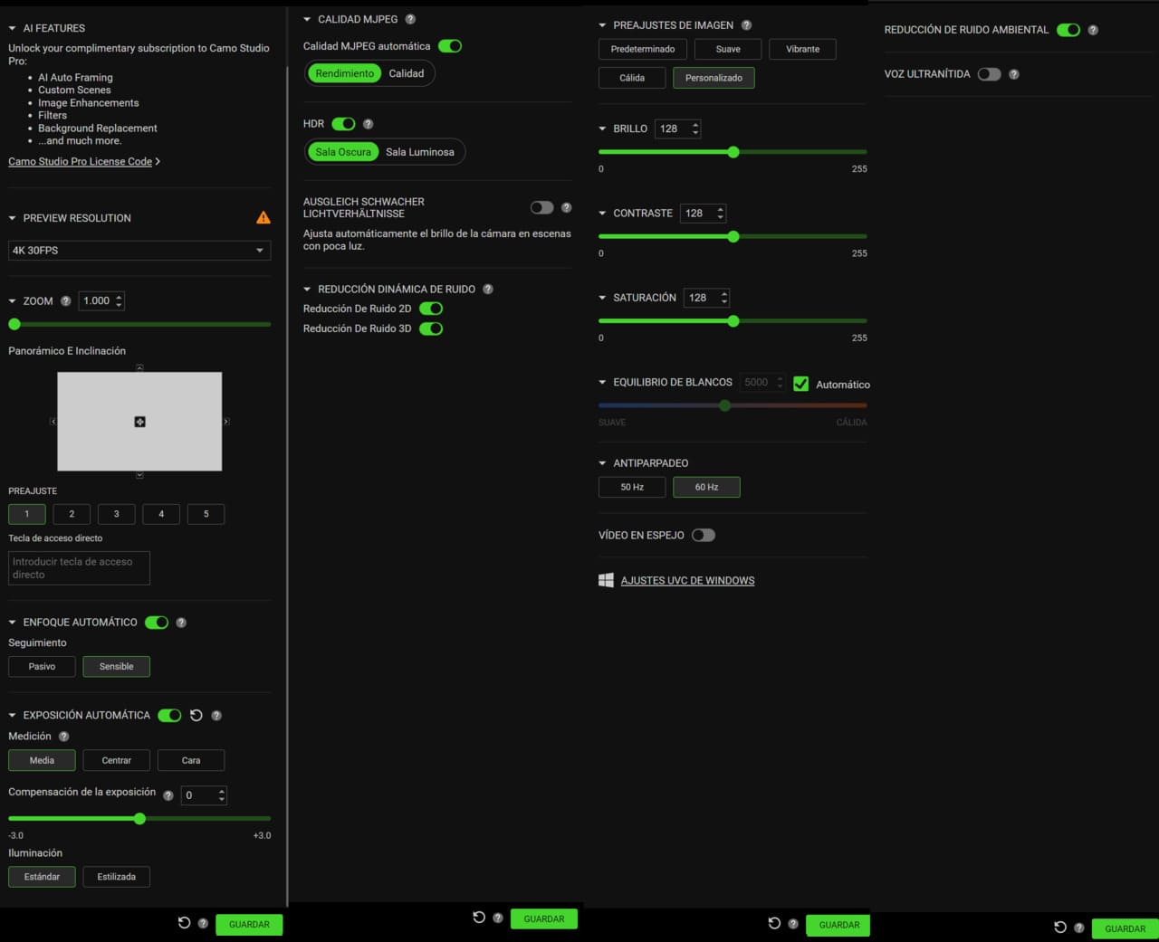 Pero donde puede destacar más es con los controles manuales. Tienes acceso a ISO, velocidad de obturación, balance de blancos, desenfoque cinematográfico… La integración con Camo Studio añade funcionalidades adicionales: segmentación de fondo, reemplazo dinámico de fondos, y correcciones de iluminación que funcionan sorprendentemente bien.