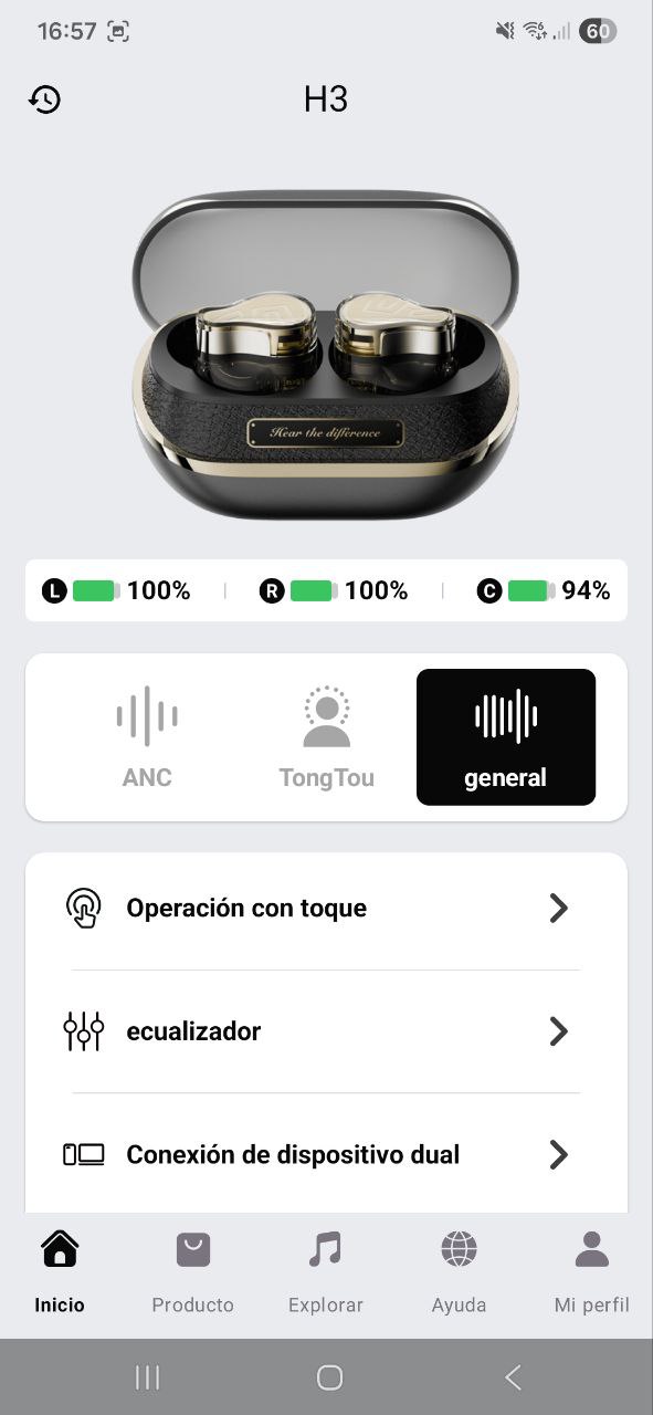 El apartado sonoro es, sin duda, el punto fuerte de los H3. El driver dinámico de 12 mm aporta graves profundos y controlados, mientras que los dos Balanced Armature se encargan de los medios y agudos, ofreciendo una separación de frecuencias clara y detallada. El resultado es un sonido equilibrado, con gran resolución y potencia sin distorsión, incluso a volúmenes altos.