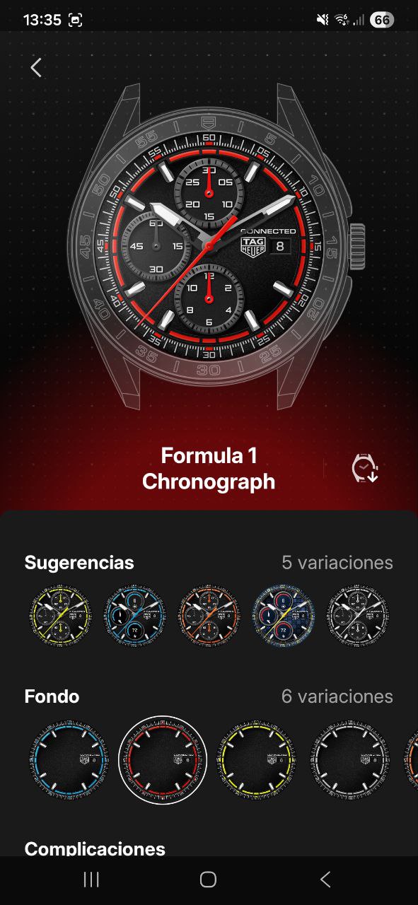 TAG Heuer ha trabajado con atención sus esferas digitales, recreando colecciones emblemáticas como Carrera y Aquaracer, además de ofrecer diseños específicos para el entorno Connected. La fidelidad de texturas, tipografías y relieves de las esferas refuerza el ADN de la marca, algo que importa a su público objetivo. La interfaz de TAG Heuer OS acompaña con animaciones cuidadas, transiciones suaves y haptics bien calibrados; se percibe coherencia entre la estética tradicional y la interacción digital.