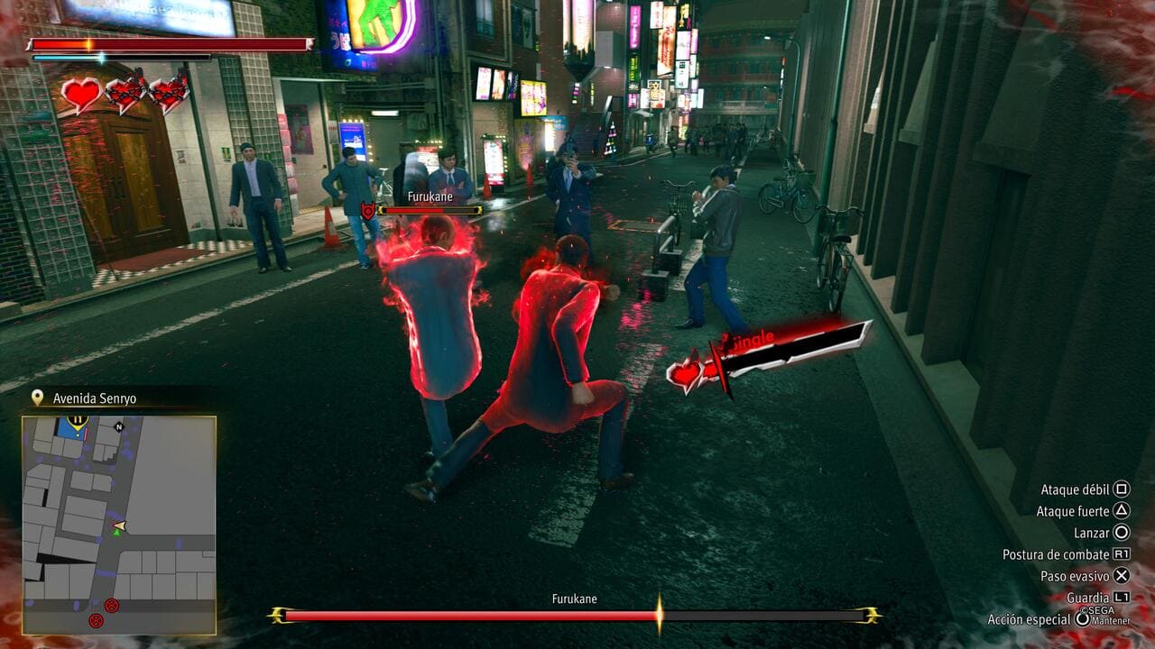 A los mandos, Mine es una bestia distinta a Kiryu. Su estilo de combate es muchísimo más rápido y acrobático, con saltos sobre enemigos, cadenas aéreas y un castigo muy agresivo. Además, cuenta con un sistema de reputación: al completar misiones, desbloqueas subhistorias centradas en sus intrincadas relaciones con otros yakuza. Su modo Dark Awakening lo empuja a un estado casi bestial para reventar oleadas y jefes.