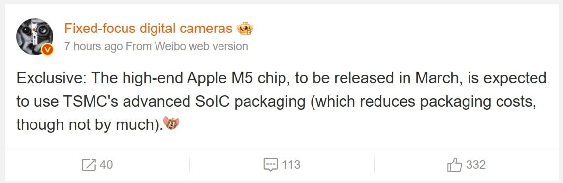 Las largas esperas que están sufriendo algunos modelos de MacBook Pro con M4 Max se interpretan como una señal clara de que Apple está ajustando la transición hacia la nueva generación. Según el filtrador de Weibo Fixed-focus digital cameras, los M5 Pro y M5 Max llegarían aproximadamente un mes más tarde de lo esperado, posiblemente por limitaciones de capacidad en TSMC o por ajustes en la producción inicial del encapsulado SoIC.